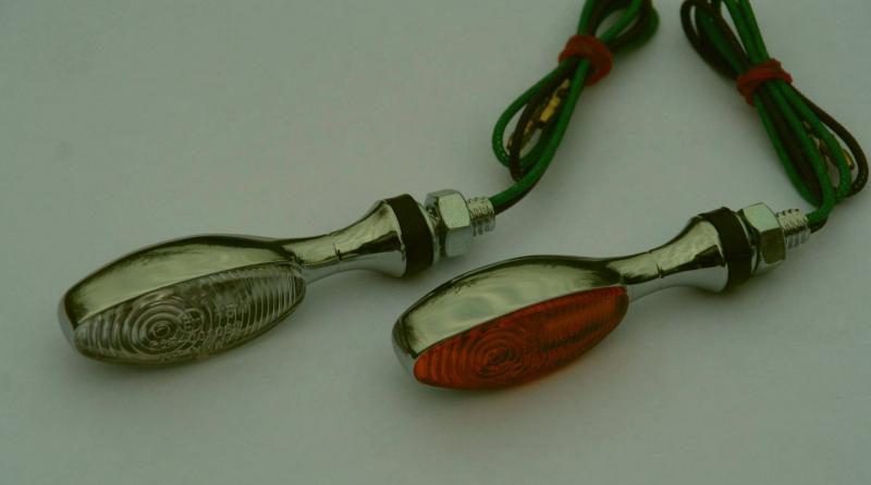 ich habe noch ein paar Microblinker mit Metallgehäuse in chrom oder in schwarz. Mit dabei sind immer gelbe und weisse Lichtscheiben, Birne ist 12V 6 Watt gelb. Die Blinker sind von Oxford, England. Sind mit E-Zeichen für hinten. Für den Satz möchte ich 23,- + Versand haben. Bild zeigt die Chromteile.