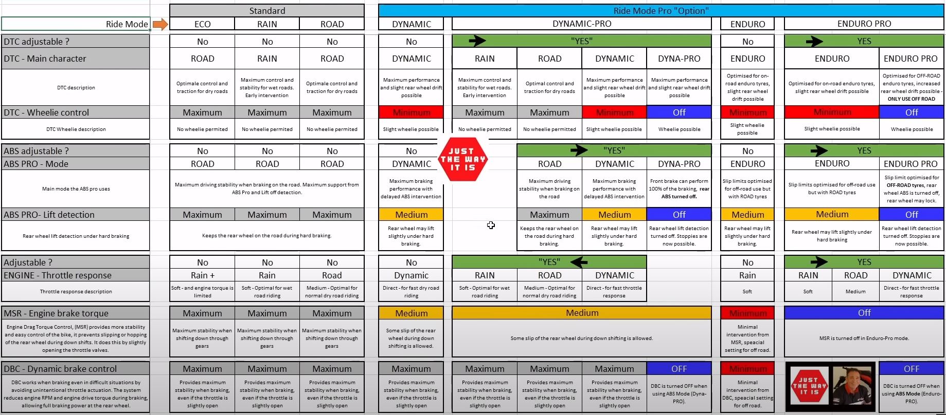 ich fahre mit Fahrmodi Pro und eingebautem Codierstecker. Damit stehen mir zur Auswahl Rain, Road, Dynamic Pro und Enduro Pro.