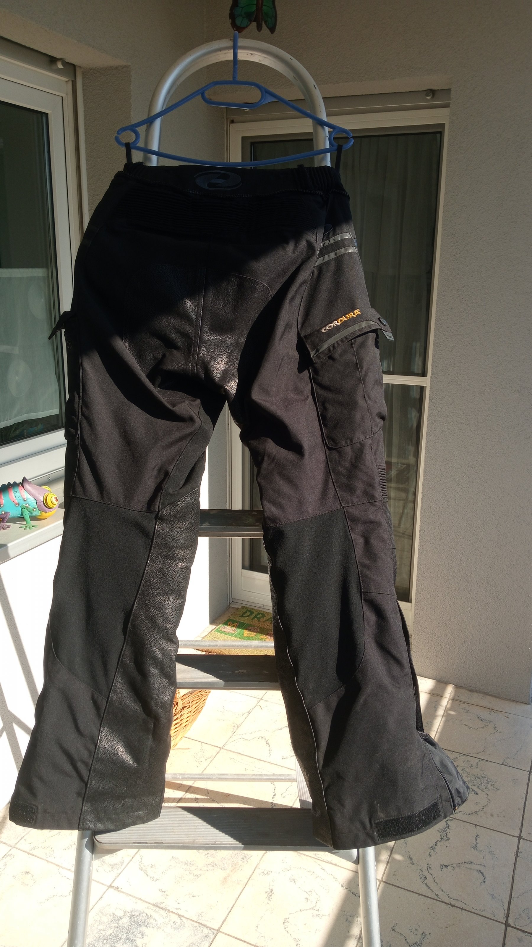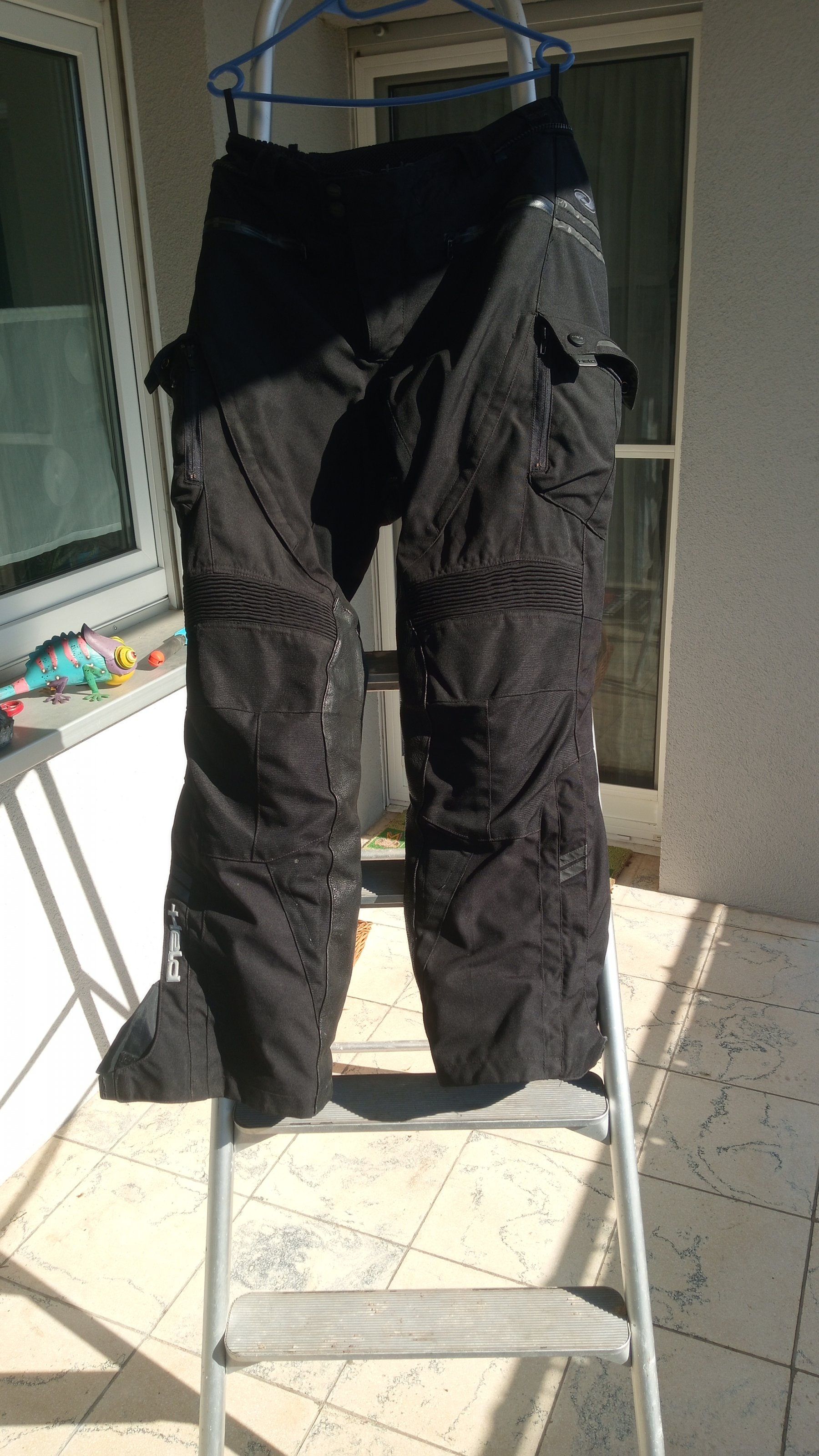 1x Hose von Held Größe M mit Lederbesatz am Popes und Innenschenkeln sowie Seitentaschen (Die Seitentaschen sind nicht dicht) mit Herausnehmbarem Innenfutter sowie Protektoren.
