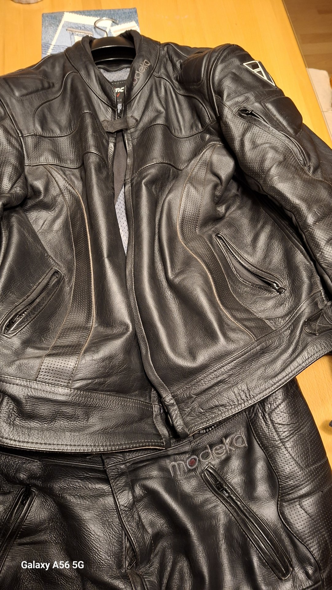 Biete meinen Motorrad Lederanzug von Modeka,mit vielen Reißverschlüsse zum öffnen leider nur ein paar mal getragen dann bin ich rausgewachsen 3 Jahre alt immer gepflegt np war 1800 ich möchte gerne 800 Euro vhb