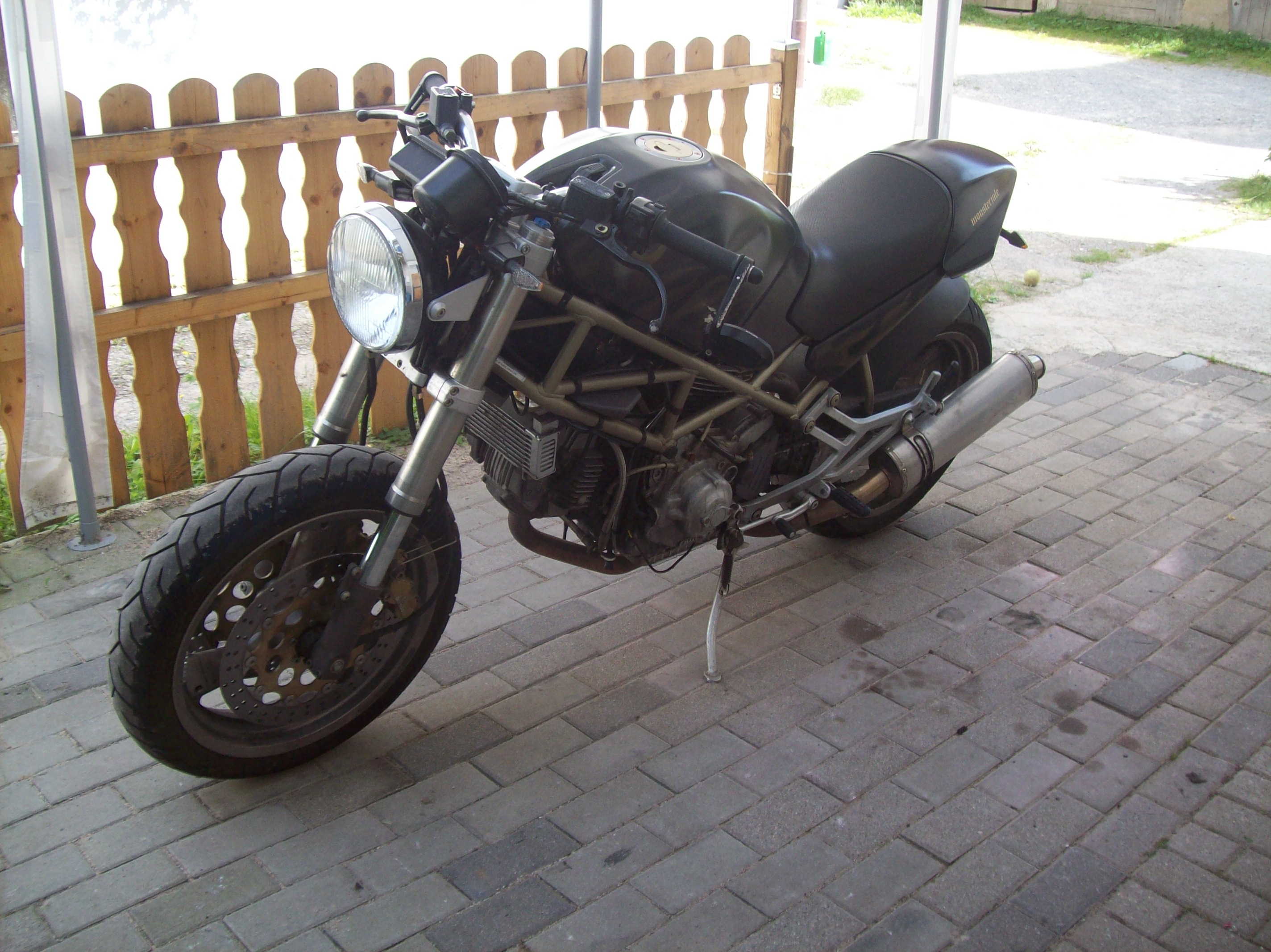 Ducati M900 Monster, 1997, 11.000km, EK aus Unfall (im Stand umgefahren worden, Versicherungsrestwert) für 800. Tank verzinnen, lackieren (selbst), Umbau auf Roadster, gebrochener Frontfender gekürzt und lackiert, Heckumbau mit LED. Investition: 200 Euro. Nach zwei Jahren wieder verkauft.