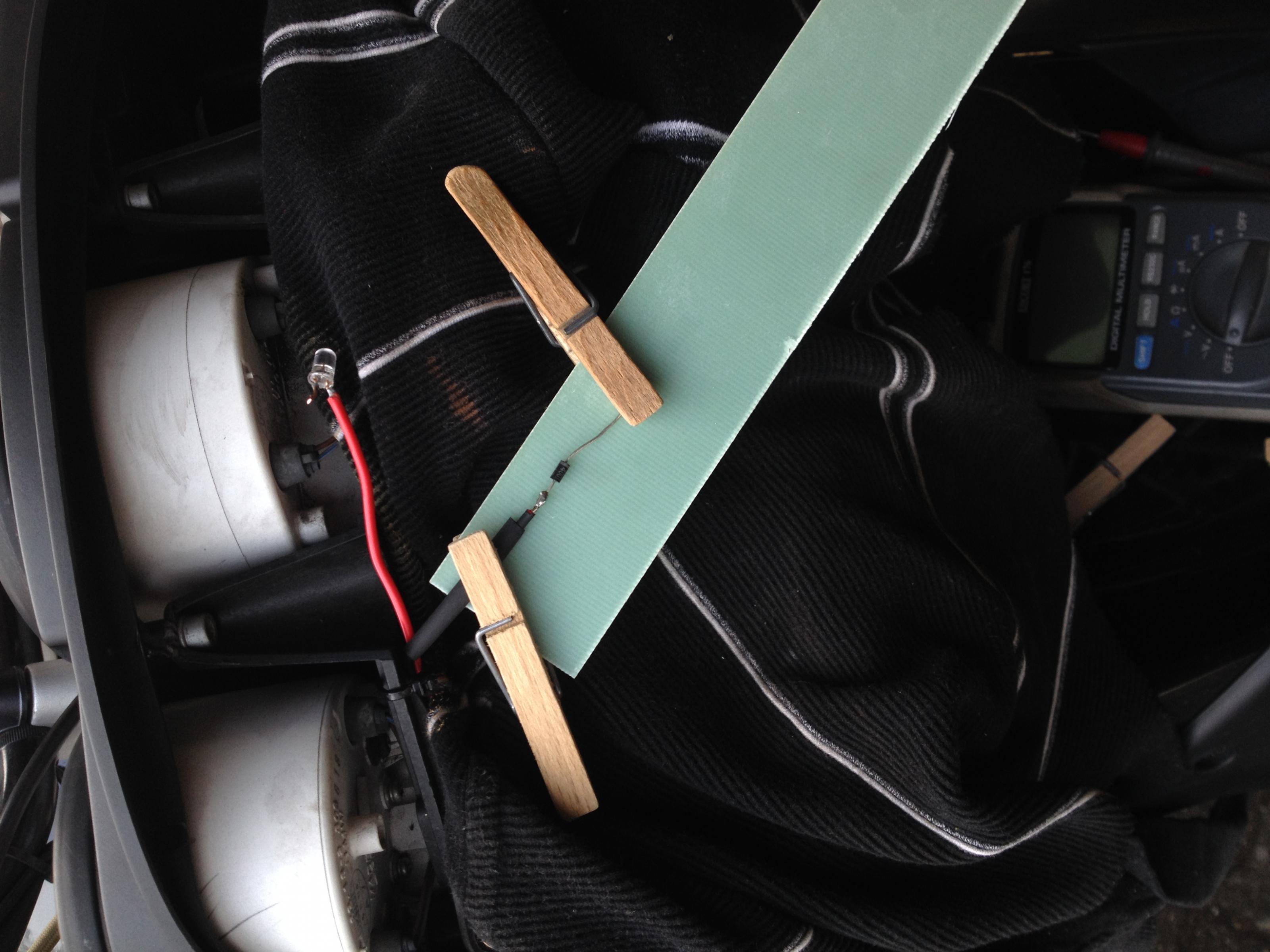 Probleme: Ich weiß nicht, wo das Pluskabel der Parklichtlampe ist. Die bebilderte Anleitung des Herstellers zeigt an der entscheidenden Stelle Fotos von einer 2 Zylinder F650GS (oder F800GS oder so ähnlich)- jedenfalls ist es nicht mein Motorrad-Typ.