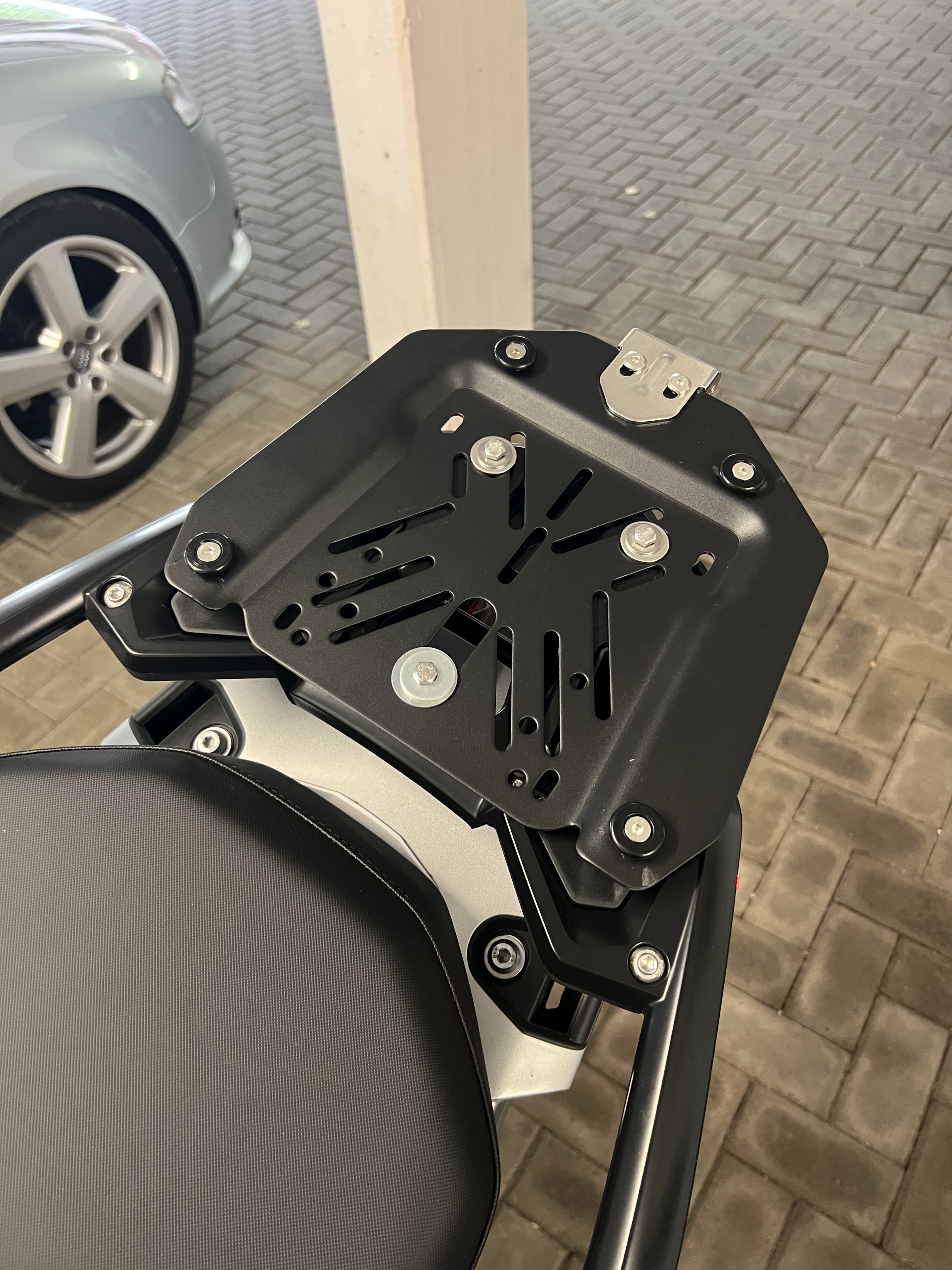 Wenn das Teil da ist,legst du die mitgelieferte Halteplatte mal auf den Gepäckträger und befestigst diese mit einem der mitgelieferten Haltebleche/Schrauben.