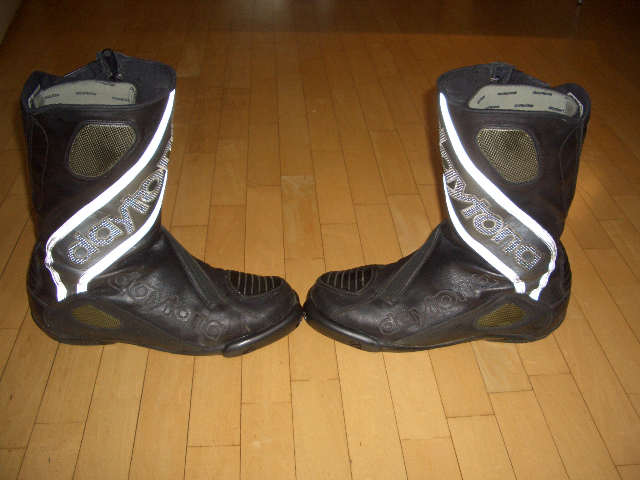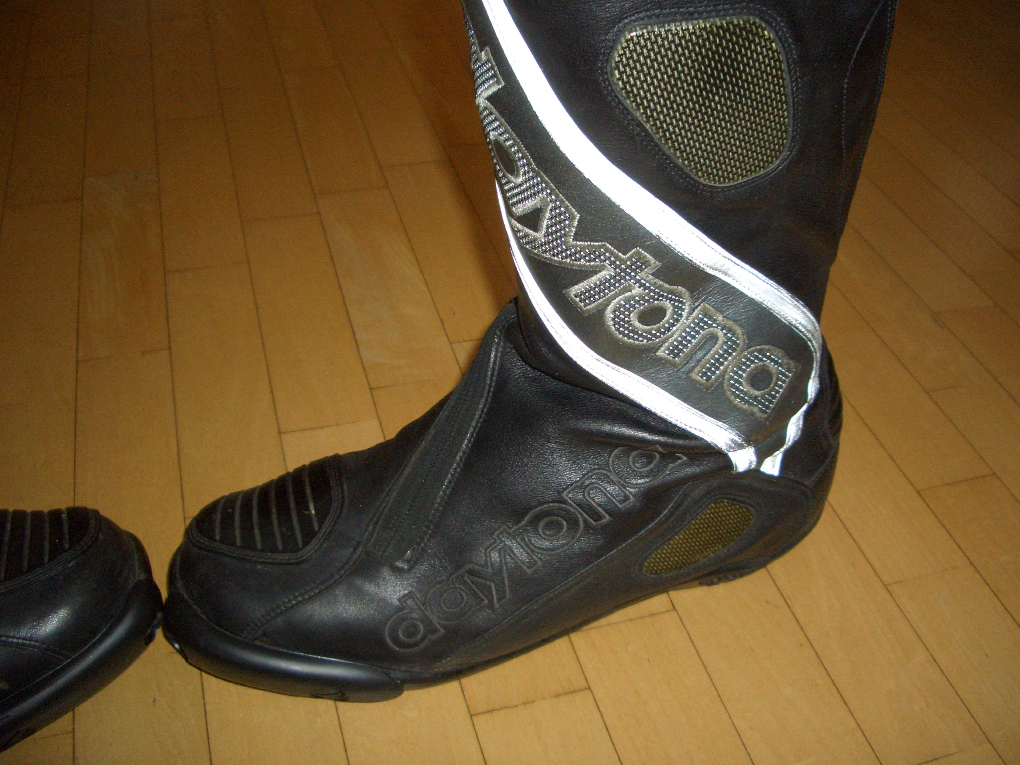 Wie o.g. biete ich die tollen Evo Sports von Daytona an. Alter ca. 5,5 Jahre. Wurden von mir nur dreimal zum Renntraining (ohne Sturz) und auf wenigen Tagestouren getragen. Eignen sich hervorragend als sichere Tourenstiefel. Regelmäßig mit entsprechendem Pflegemittel behandelt. Da ich seit 4 Jahren einen Tourer fahre und weitere Stiefel (Touring und Sommer) besitze , sind Sie einfach über und zu schade zum "rumstehen". Übliche Gebrauchsspuren. Farbe schwarz mit grauem reflex Streifen. Größe 45 passt wirklich. Ich habe 44,5. Mit Sportsocken ergibt sich ein "saugendes" Gefühl. Sind über Klett individuell an die Wade anpassbar. Reparaturservice im "Sturzfall" ist von Daytona (München) legendär. Neupreis momentan mindestens 429,00€!
