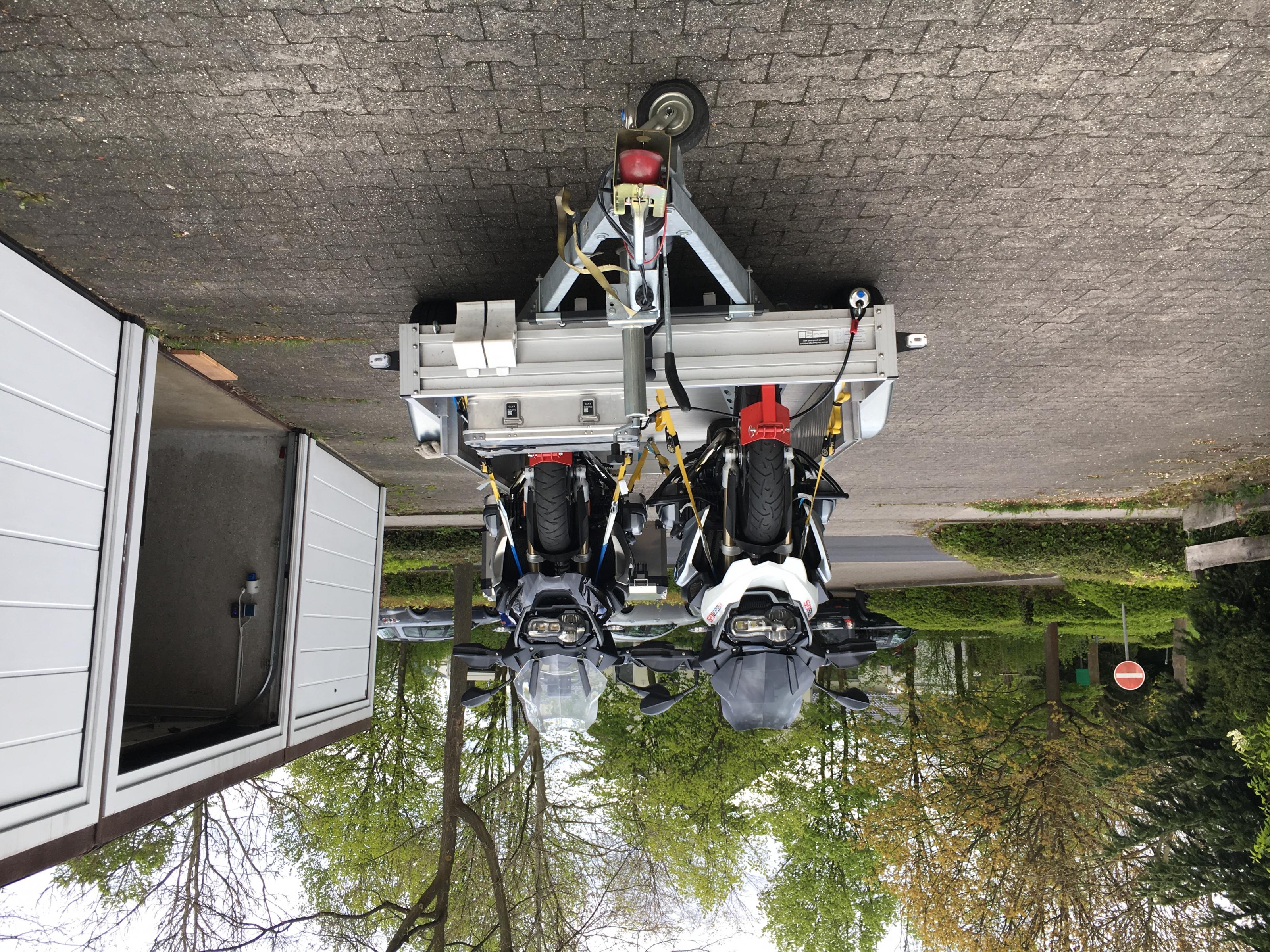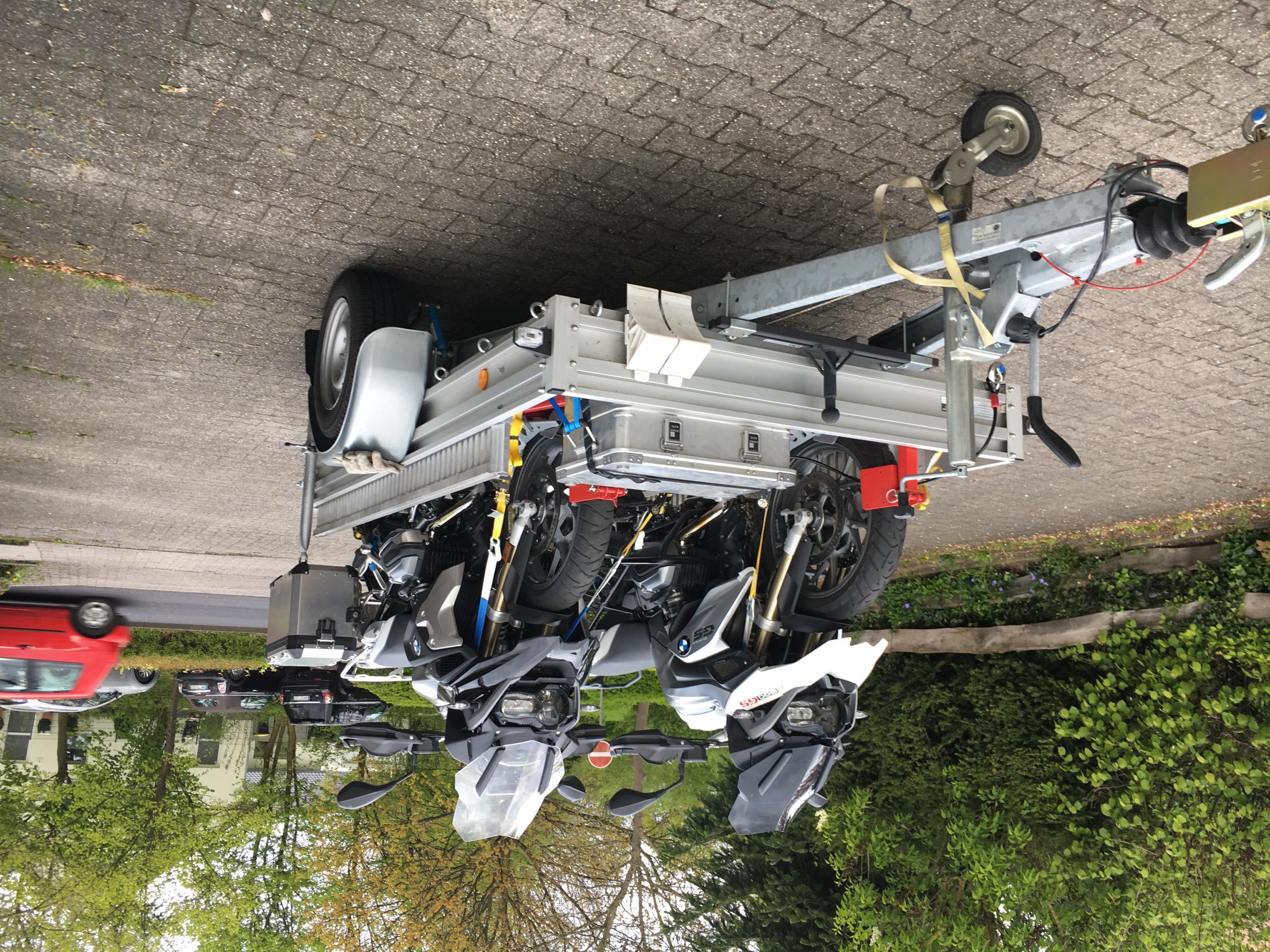 Auf den Bildern sieht man auch noch die Radhalter und eine Zargesbox, die sind sind nicht dabei; die Mopeds auch nicht.