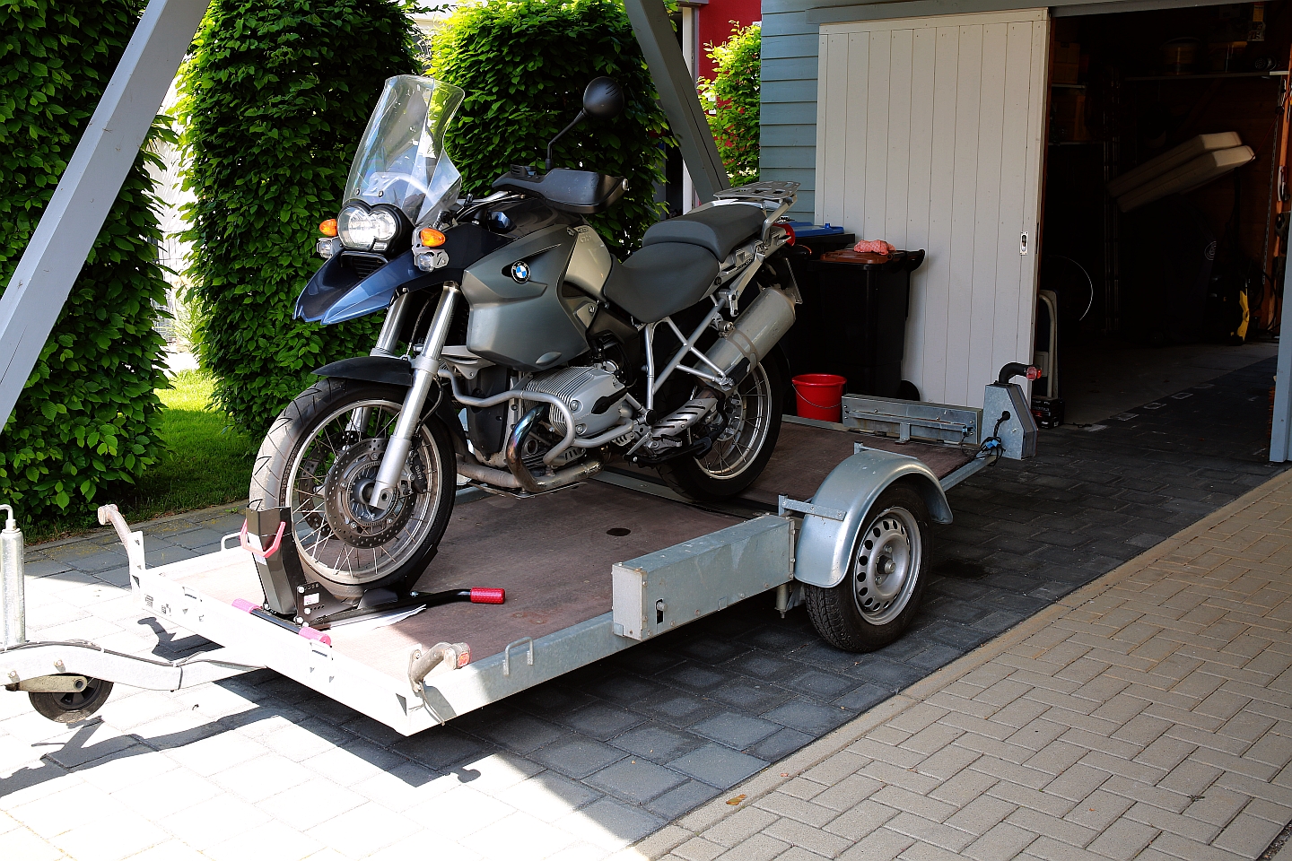 zu verkaufen ist ein absenkbarer Motorradanhänger Marke Ullmann Agur Bj. 10.2010 (nicht hydraulisch). Ungebremst. 2 Vorbesitzer. Einfacher und bequemer kann man ein Motorrad nicht verladen ;-) Ehem. NP 2000 Euro. Reifen sind neu Ende 2016 montiert worden. Hänger wurde kaum genutzt. Der Hänger stand geschützt unter einem Unterstand. 2 Motorradwippen zum verschrauben auf dem Hänger sind dabei. Wurden demontiert da wir uns Steadystands angeschafft haben. Diese sind nicht dabei. Zulässiges Gesamtgewicht 750 KG / Eigengewicht 220 KG TÜV bis 11/2018