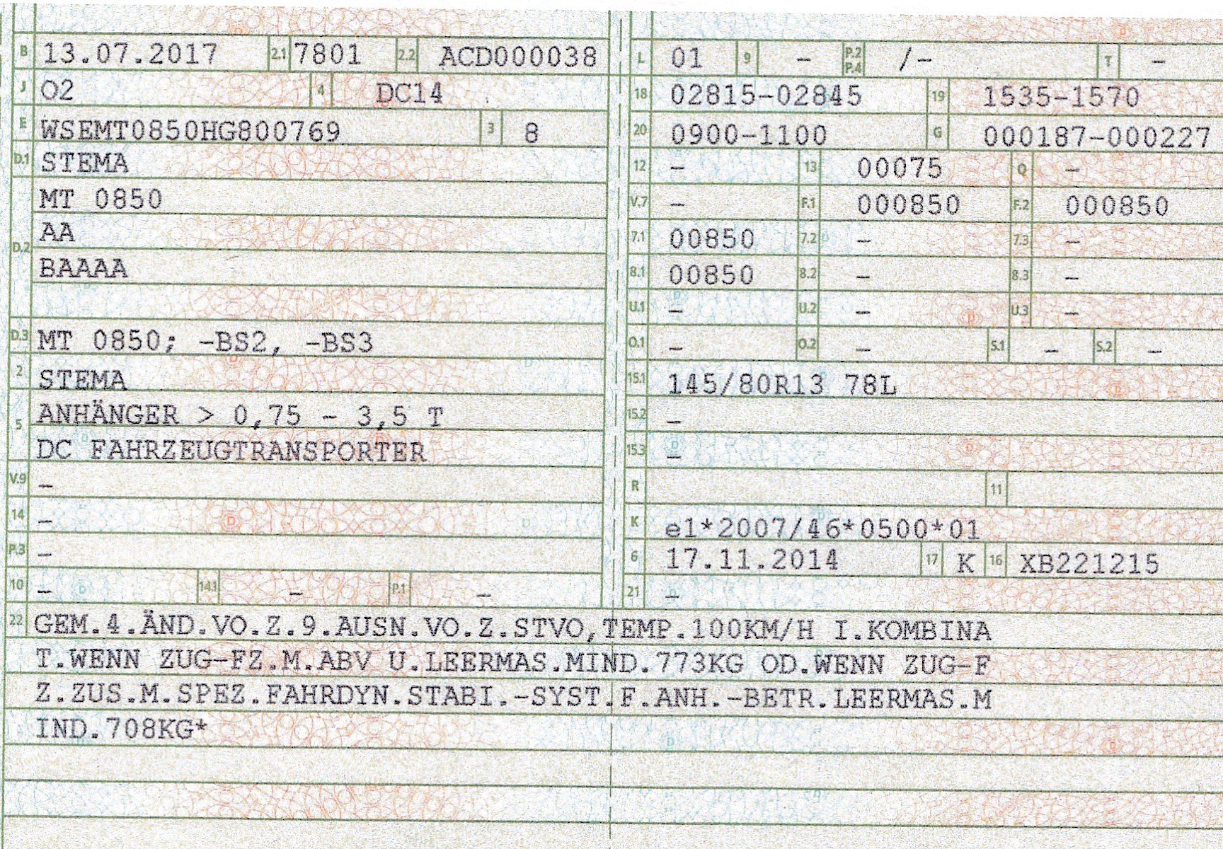 Bereifung: 145/80 R 13 79 N, DOT 11/17, also noch bis 11/23 für 100 km/h Zulassung
