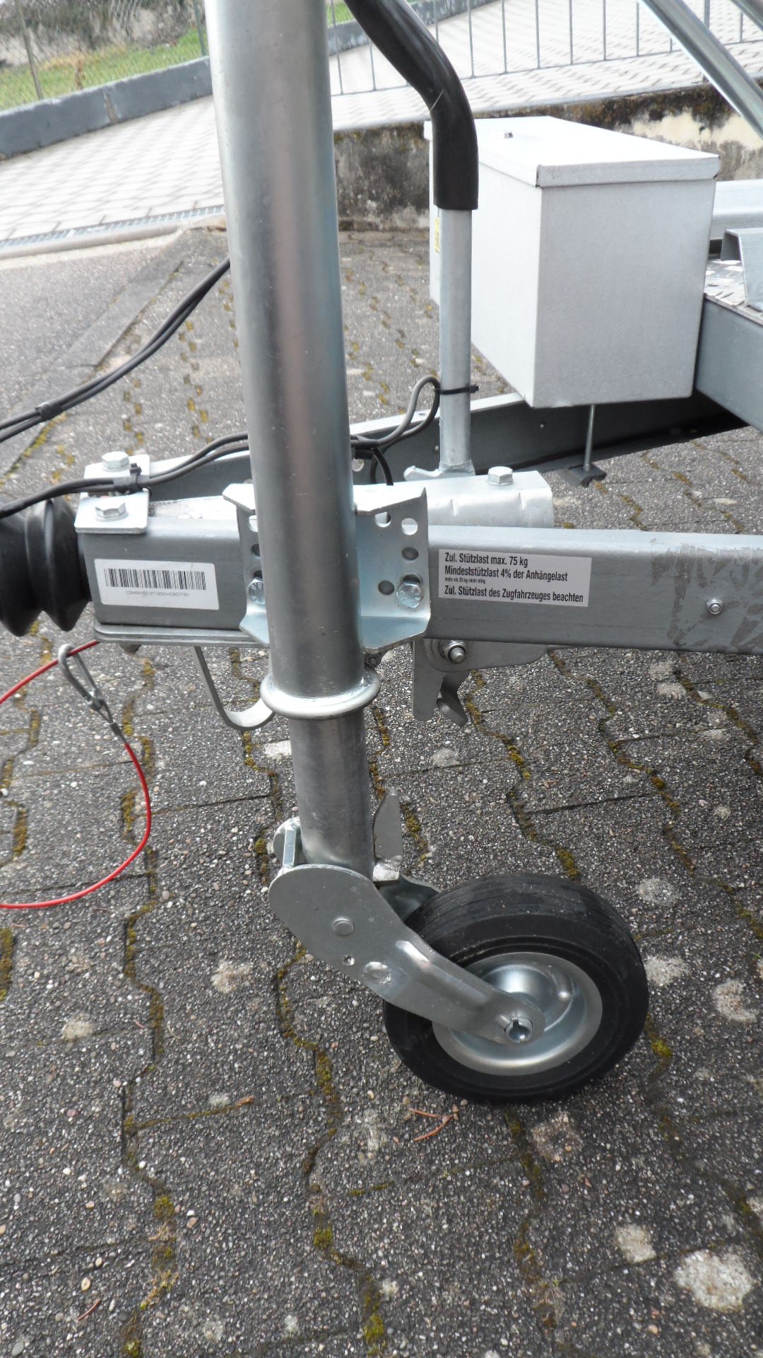 100 km/h, gebremst, Stoßdämpfer, Stützrad.