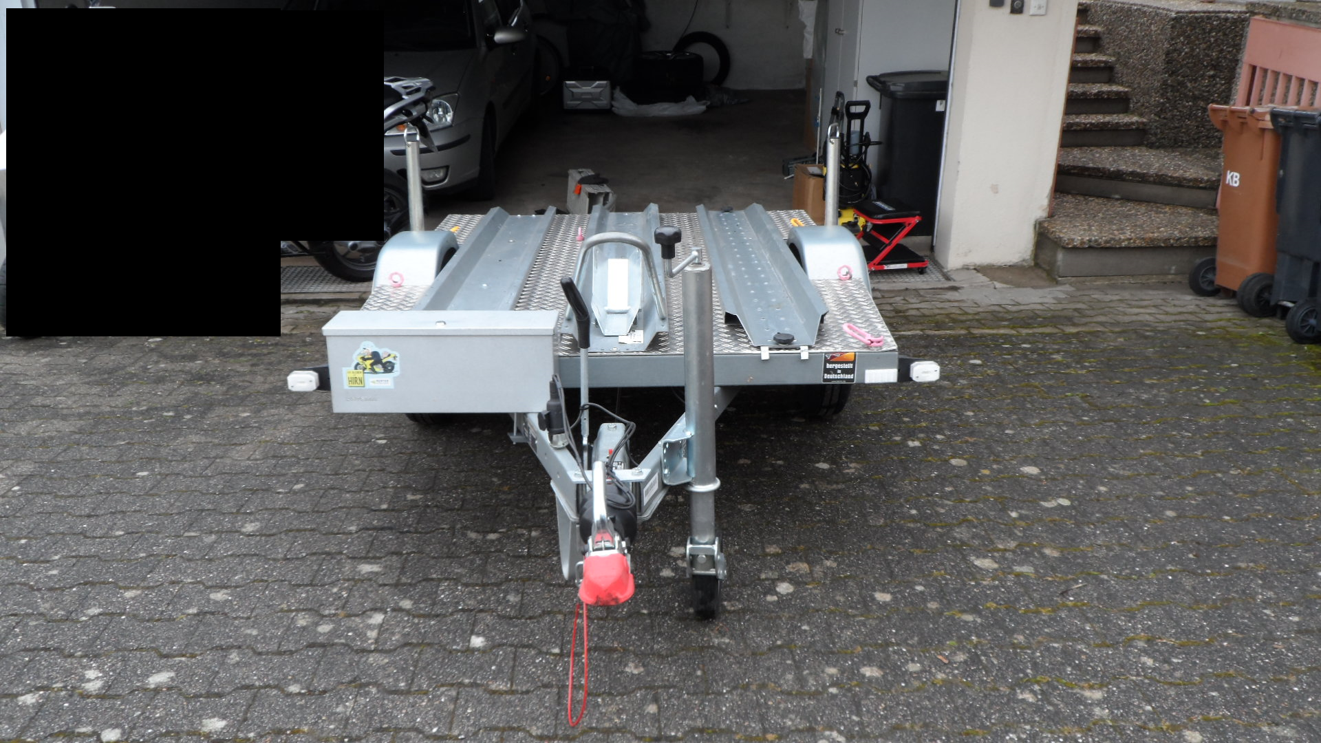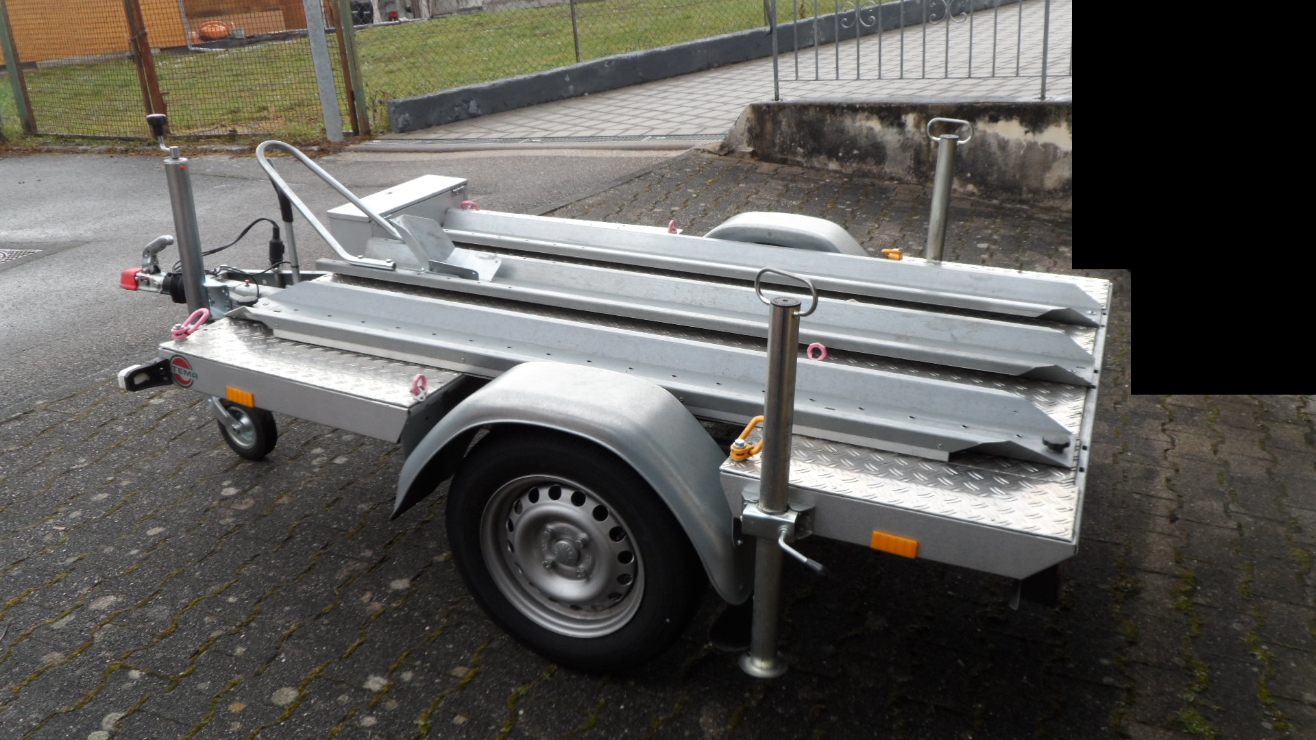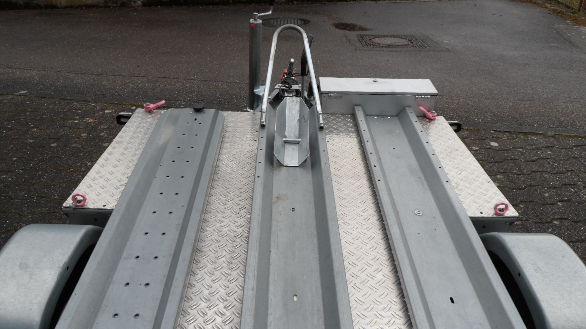-Ladefläche mit Riffelblech belegt, somit kann man auf dem Anhänger stehen