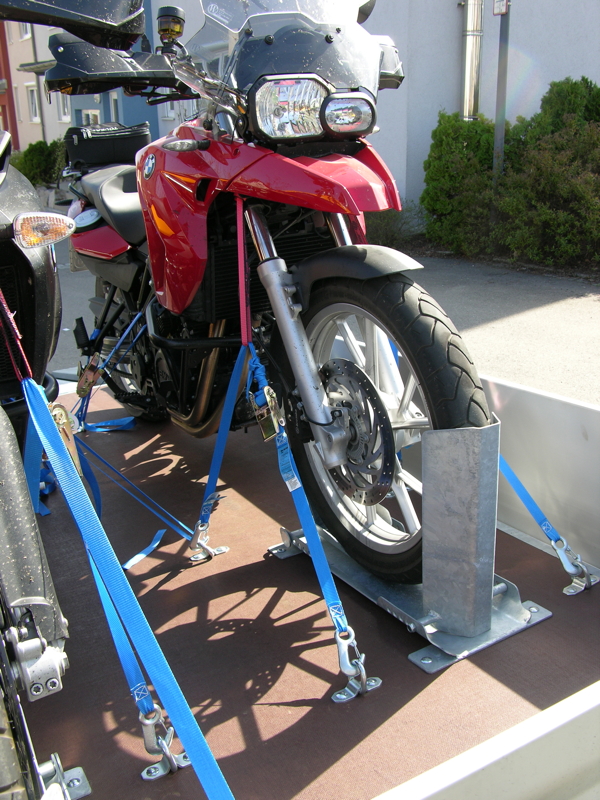 - 2x Motorrad-Ständer "Standard" von motorrad-staender.de Das vordere Profil vom Motorrad-Ständer lässt sich flach umklappen, für verschiedene Vorderraddurchmesser geeignet, mit dem Rahmen vom Anhänger verschraubt und Feuerverzinkt.