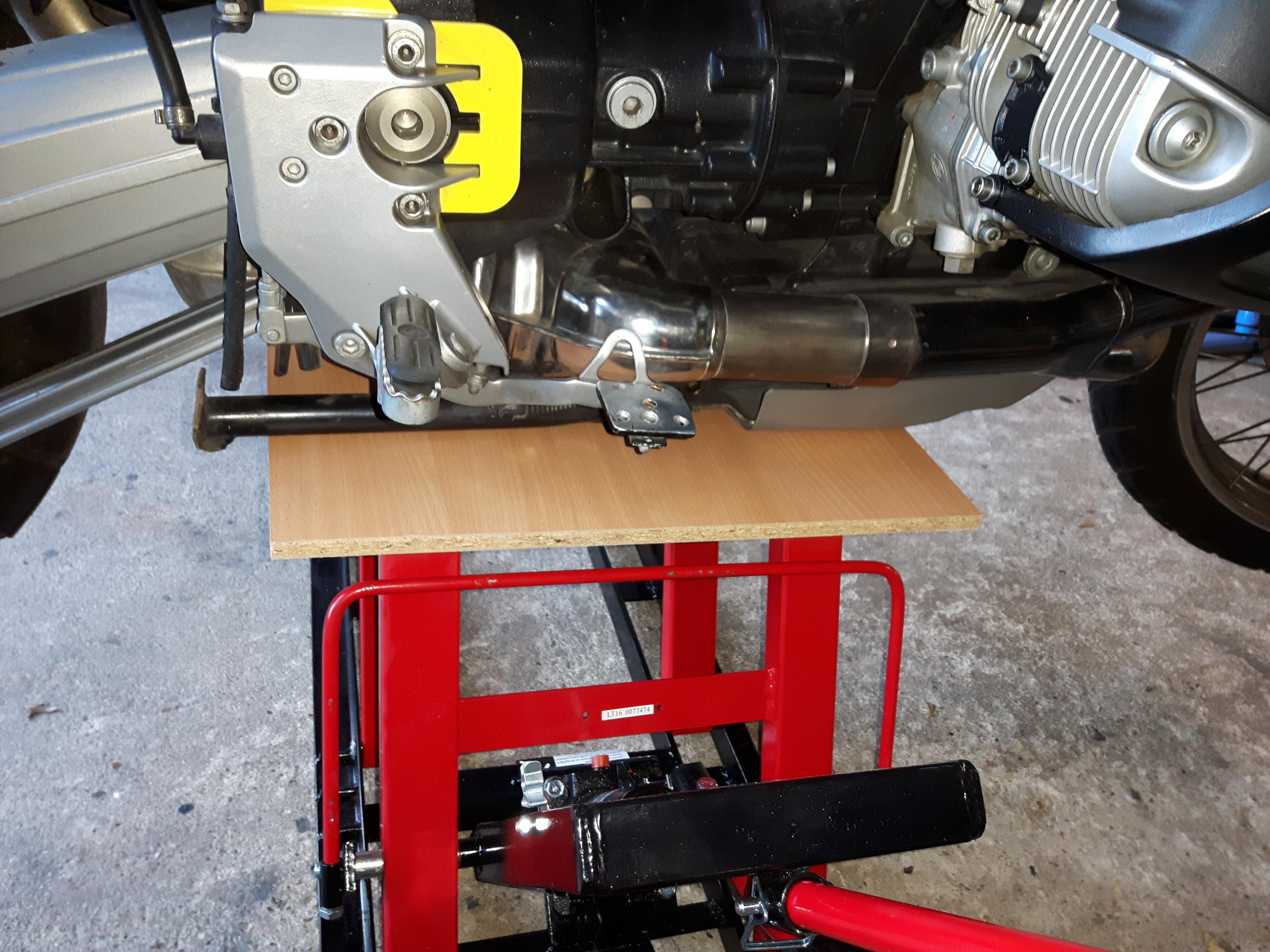 Motorschutz abbauen ist subboptimal denn der hochgeklappte Hauptständer dient mit als Auflagefläche.