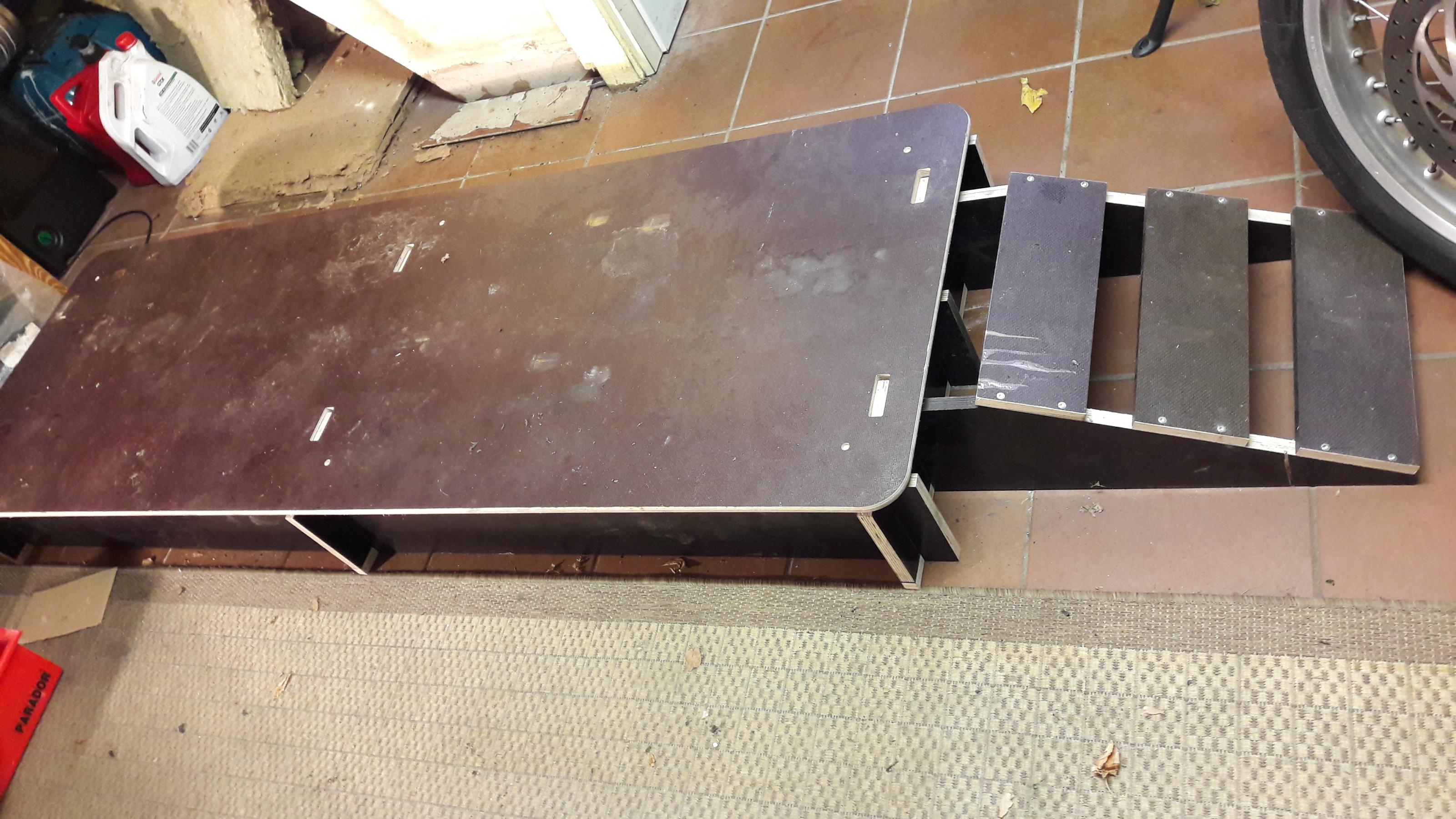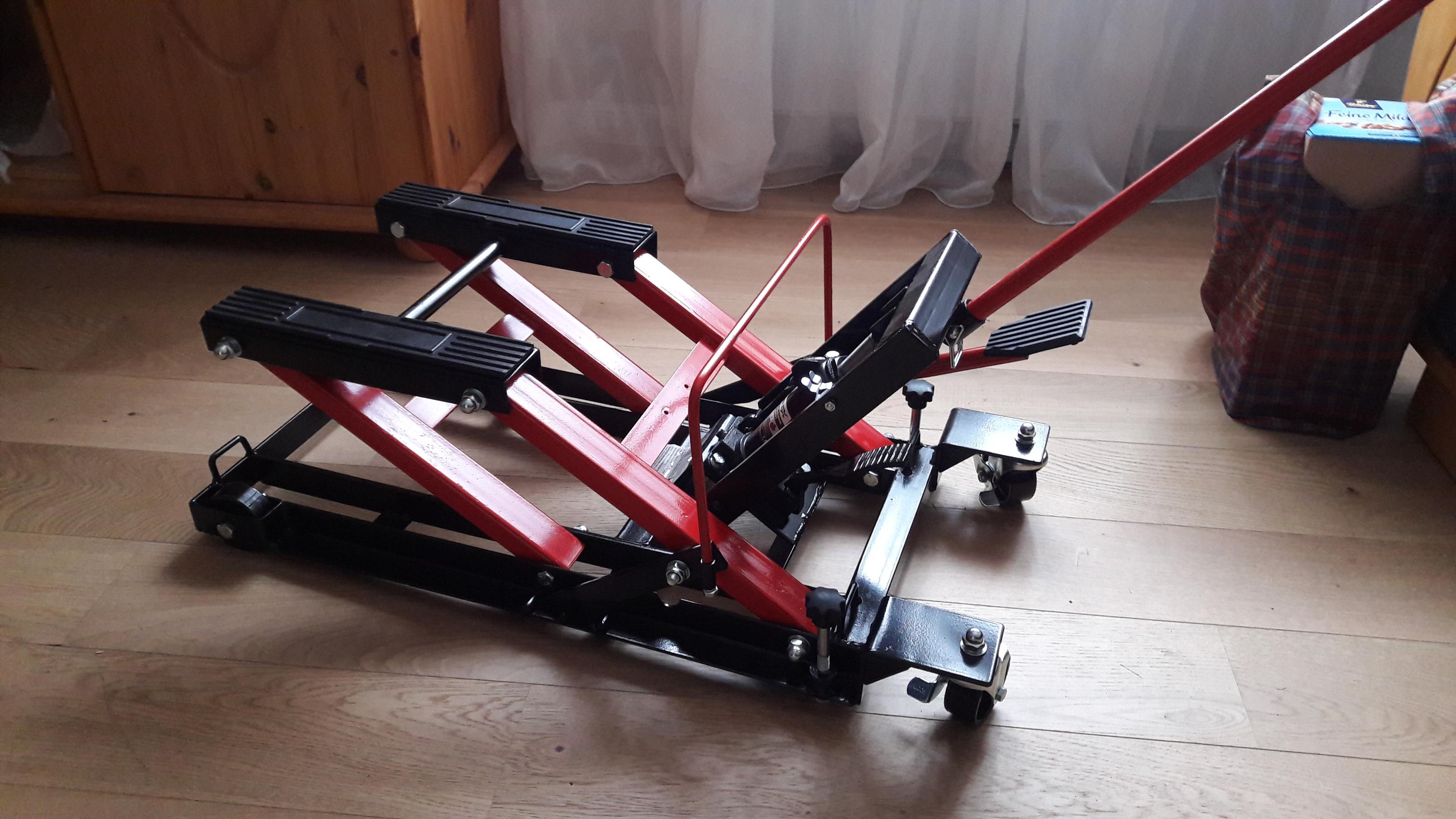 Naja, aber du musst halt immer noch den BW hochheben. Und das ist beim alten Gespann nicht so einfach. Und in die Höhe eines Bierkastens (ca.43cm?) auch nicht ohne. Und das muß man ja zweimal machen. Bierkasten unter's BW-Rad, dann das Motorrad hochpumpen, danach den zweiten Kasten unter's BW-Rad. Sonst kann einem unter Umständen die Garage zu schmal werden. So von wg. daß das Gespann quer, breiter wird. . .Wäre hierfür evtl. 1-2 Bierkisten aufeinandergestapelt und unters BW-Rad gestellt und dann das Anheben des restl. Mopeds per Bühne nicht auch ne Option?