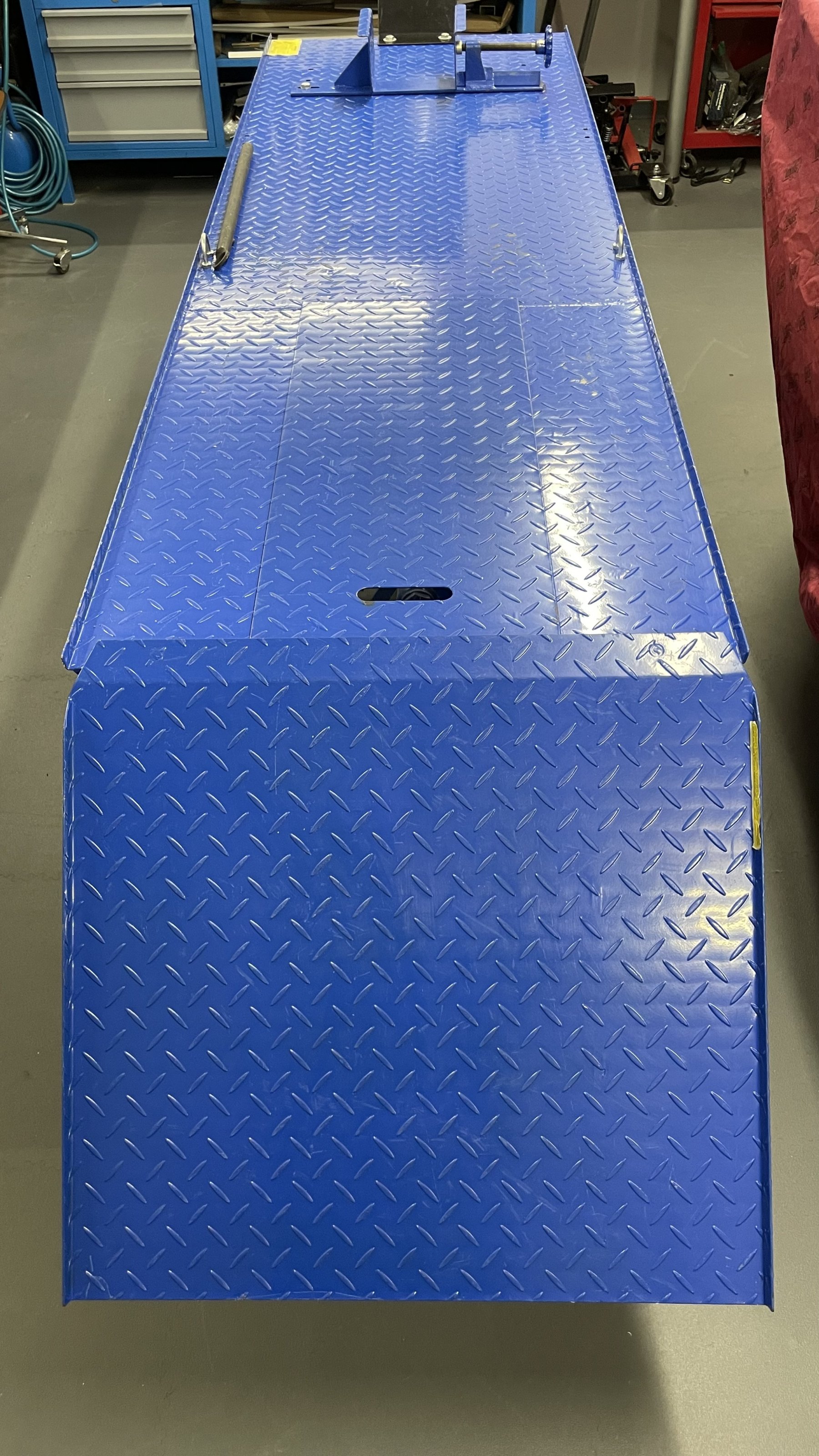 Die Hebebühne hat, z.B für den leichteren Ausbau des Hinterrads, einen entnehmbare Abdeckung (ca. 75cm x 30cm)
