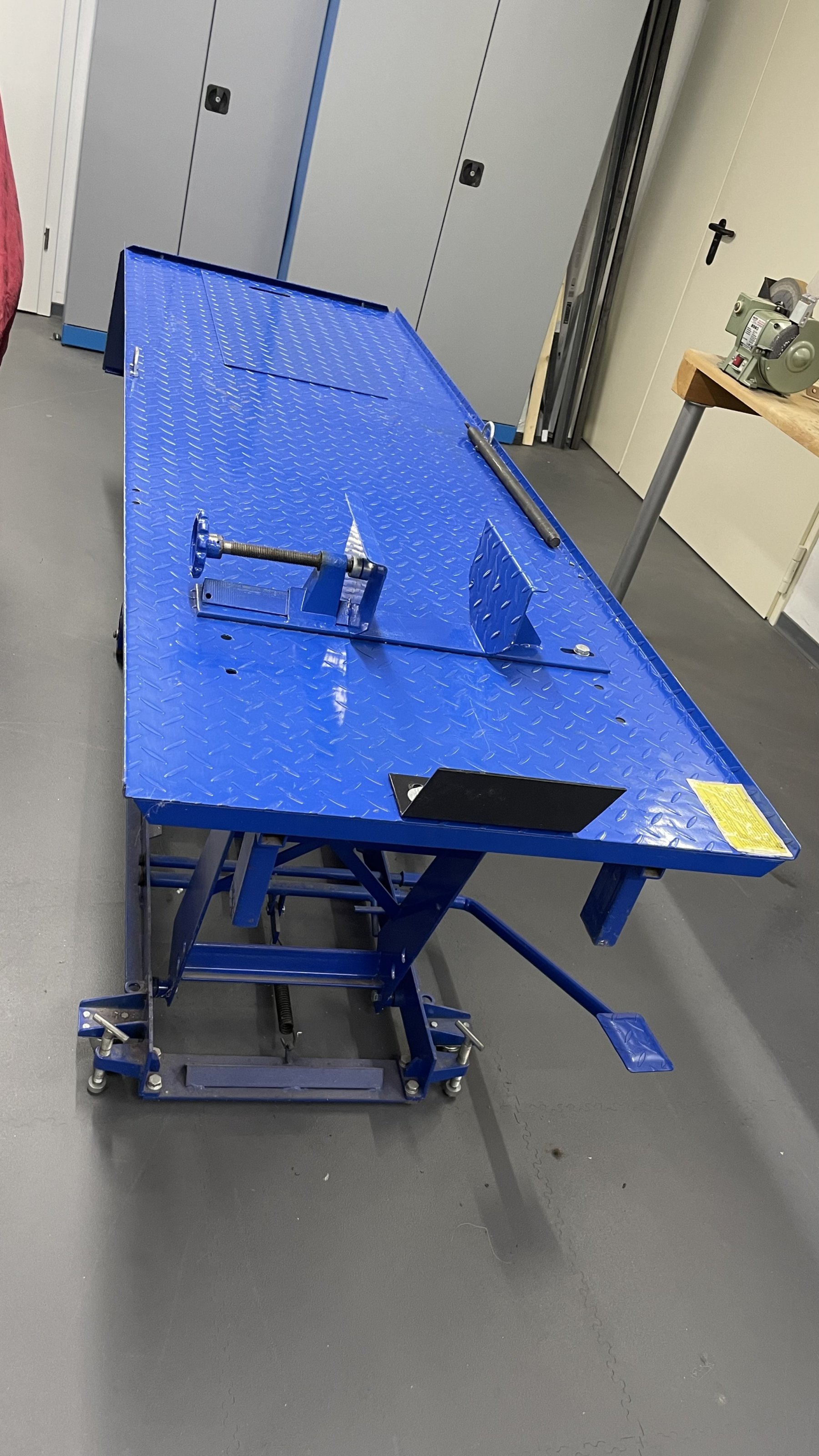 Damit kann man die Hebebühne auch mal zur Seite schieben, wenn sie stört oder der Platz gebraucht wird.