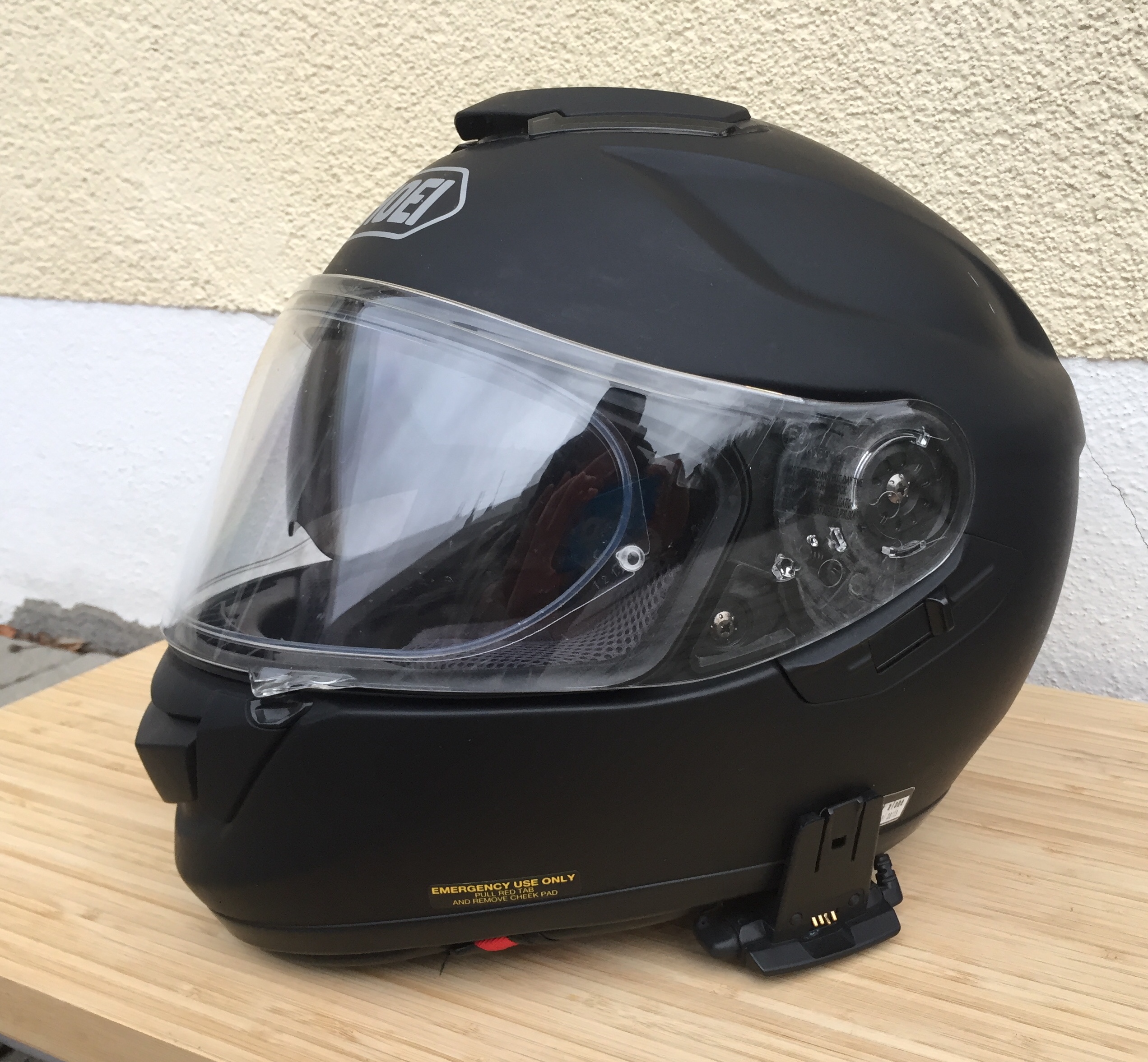 Ferner ist die Vorrichtung für eine Cardo Scala Rider-Gegensprechanlage bereits montiert, incl. Mikrofon und Kopfhörern. Die Steuereinheit selbst ist NICHT enthalten.