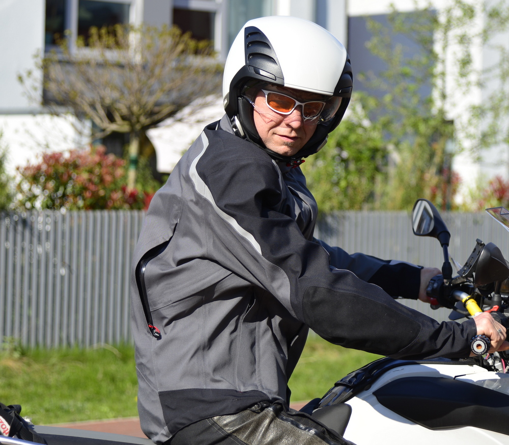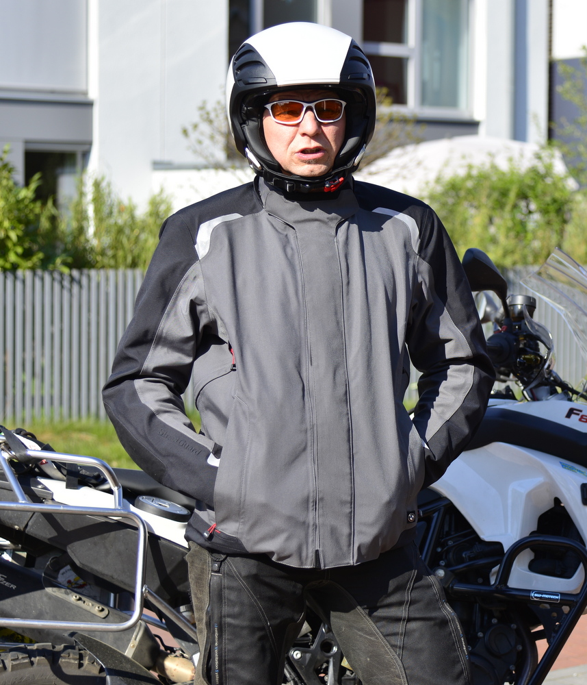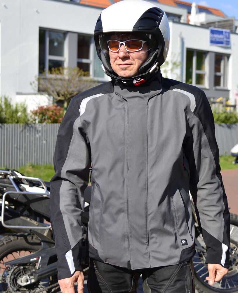 Streetguard 3 gehörte für 2014 zu den neuen Jacken der BMW Kollektion. Modular lassen sich eine warme Fleece-Jacke und ein Sturmkragen mit Kapuze einzippen. Für den All-Wetter-Komfort sorgen Lüftungsreißverschlüsse (YKK Aquaguard) am Rücken und vorne auf Lungenhöhe. Sich verhärtende Schaum-Protektoren (Rücken: NP2-Protektoren) stecken in den justierbaren Taschen an Rücken, Ellenbogen und Schulter. + warme Fleece-Jacke, Rückenprotektor und Sturmkragen im Lieferumfang enthalten! Die Verwendeten YKK Reißverschlüsse sind zweckmäßig eingesetzt und schlauerweise abgedeckt. Der Tragekomfort stellt die von BMW entwickelte BMW Climate Membrane her, die Ellenbogen aus einer Art rauem Leder-Imitat abriebsicher gemacht. Der Neupreis für diese modulare Jacke liegt bei 650 Euro. Meine Preisvorstellung sind 400 Euro für alles.