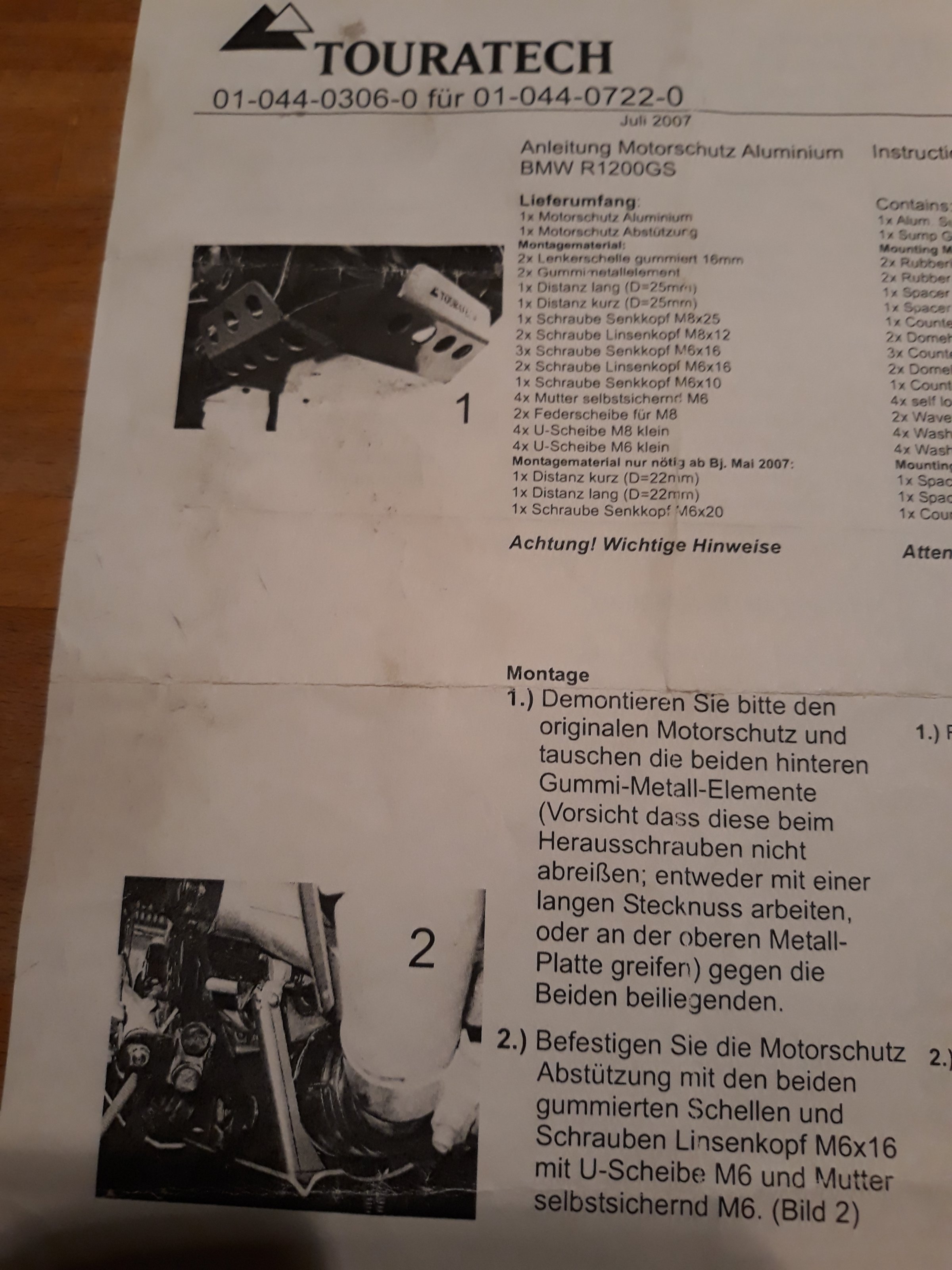 Die Montageanleitung ist von Juli 2007