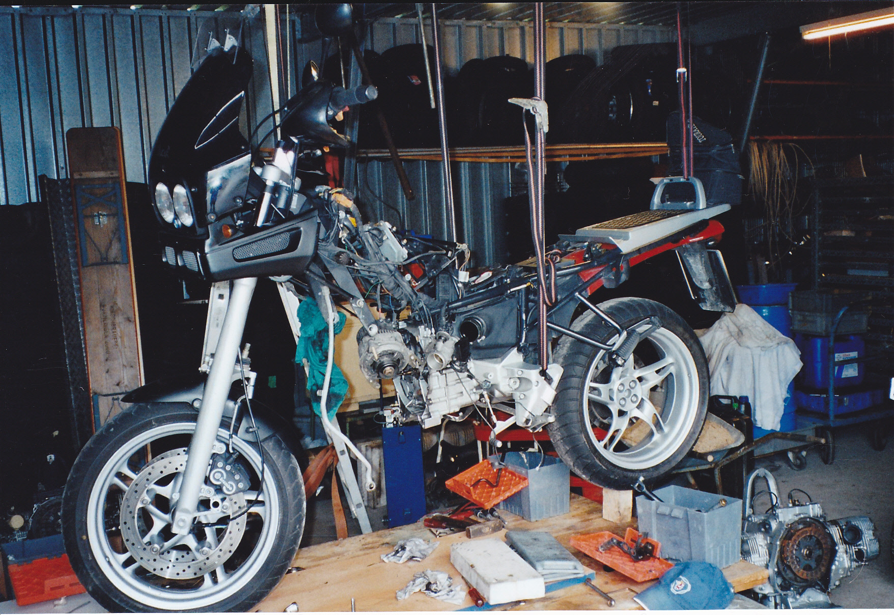 Dachte eigentlich ich könnte bis zum Getriebe demontieren, vorderes und hinteres Rahmenteil mit 'nem Motorkran und einem Kantholz sichern und den Motor dann nach vorn oder hinten rauszirkeln. Sind ABS-Block etc. alle auf dem Motorblock oder am Rahmen verschraubt?