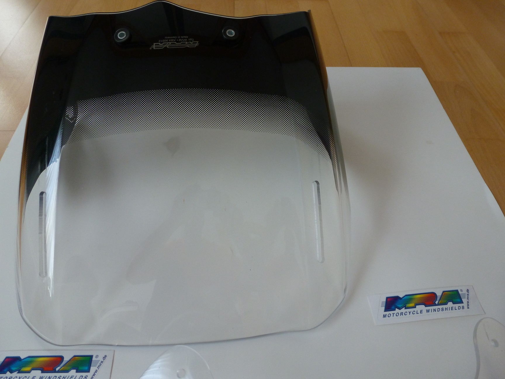 MRA Varioscreen (farblos) ,die Scheibe ist 2 Jahre alt und hat schon die ein oder andere Gebrauchsspur. Genaueres zeigen die Fotos.