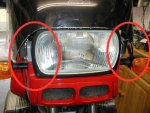 Erst bei MRA sieht man wie es auf einer R1100GS ausehen sollte. Allerdings nur von der Seite. Und nun kommt mein Problem: Von vorne sieht das Teil nur noch besch...eiden aus - es lässt zwei Riesengroße Öffnungen links und rechts des Scheinwerfers offen. Da kann der Wind durchpfeiffen und es sieht aus als wenn ich einen zu großen Hut aufsetze, oder eine Hut eines Chinesischen Reisarbeiters.