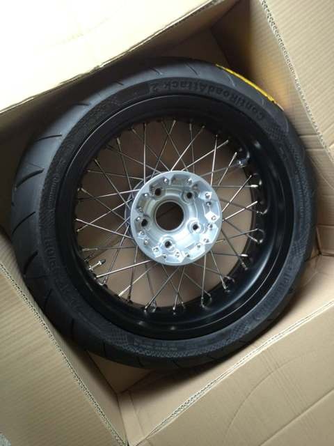 Die meisten dieser Umbauten werden mit den Gussrädern einer anderen BMW (r1200r, rt, k1300,etc ) realisiert.