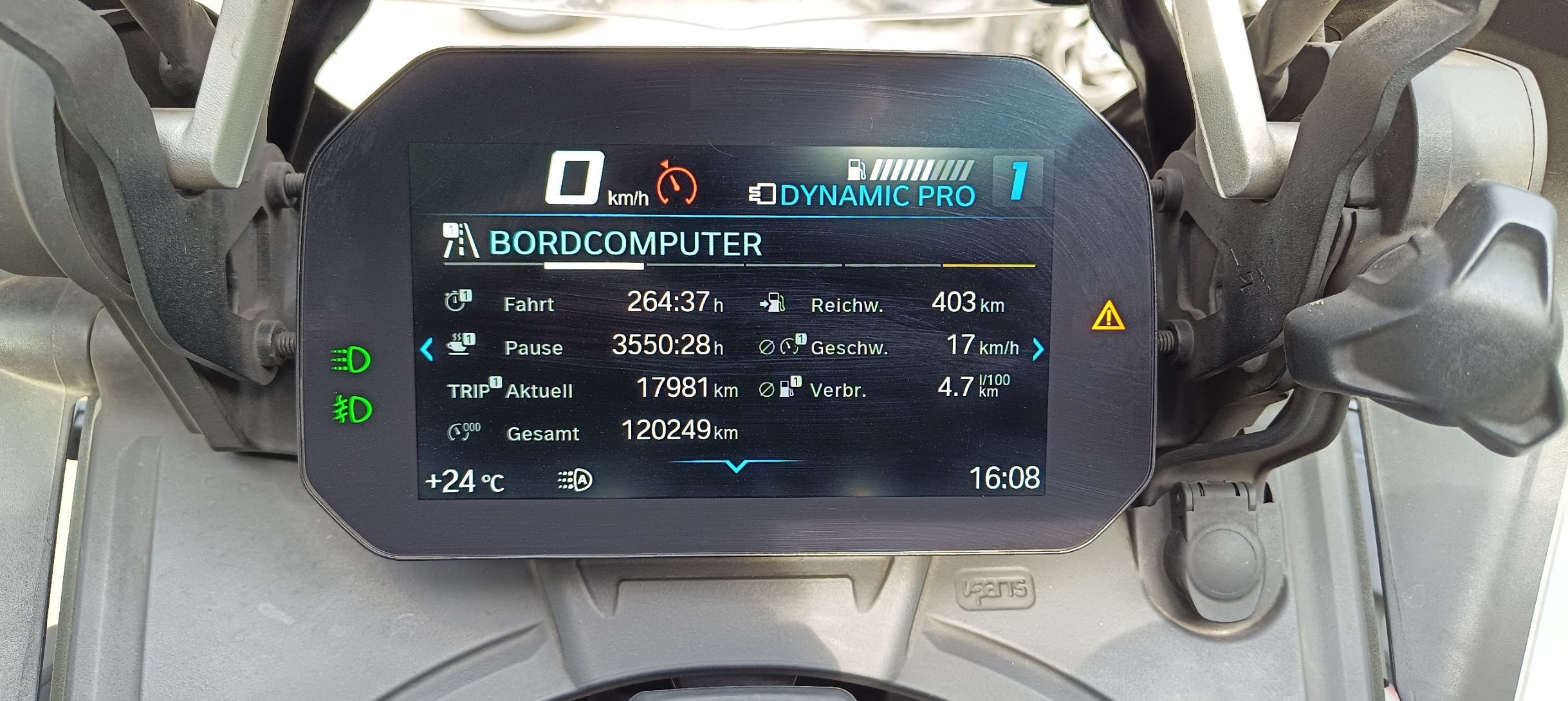 Gleiches Fahrprofil 1250GS und ich mit der V4 Bozen > München. Unterschied in der Fahrzeit: einstellige Anzahl Sekunden (wir sind hintereinander gefahren. Nur Pässe, / Landstraßen, zügig und beide Motorräder Solo, in Sauerlach getankt. Das wäre mit 7,2l / 100km nicht möglich gewesen.
