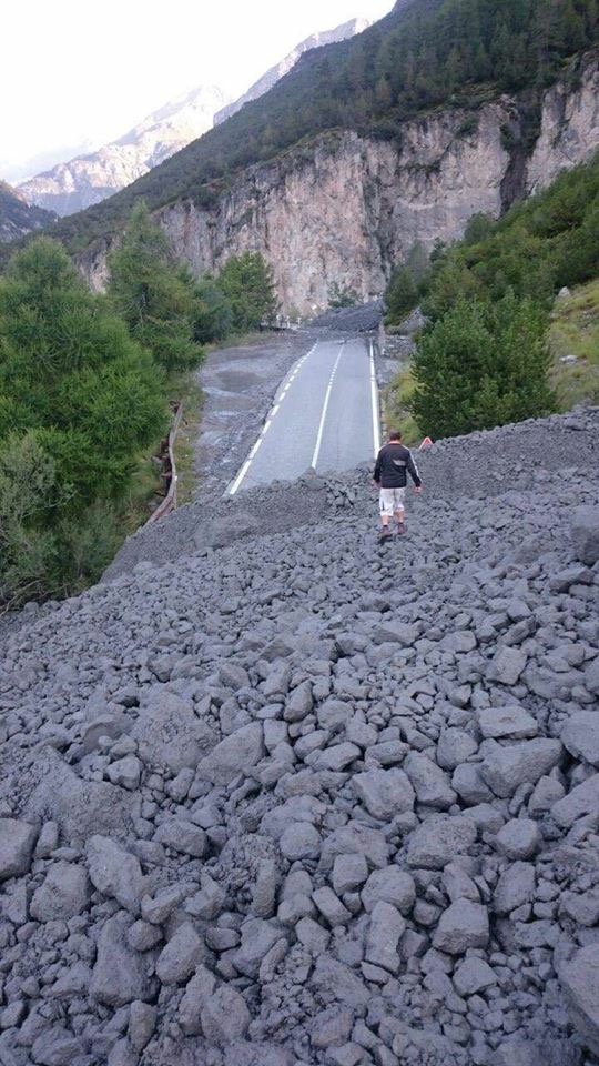 Gesperrt: Zwischen Bormio und dem Stilfserjoch (km 106,400 - km 124,305) SPERRE nach einem Murenabgang.