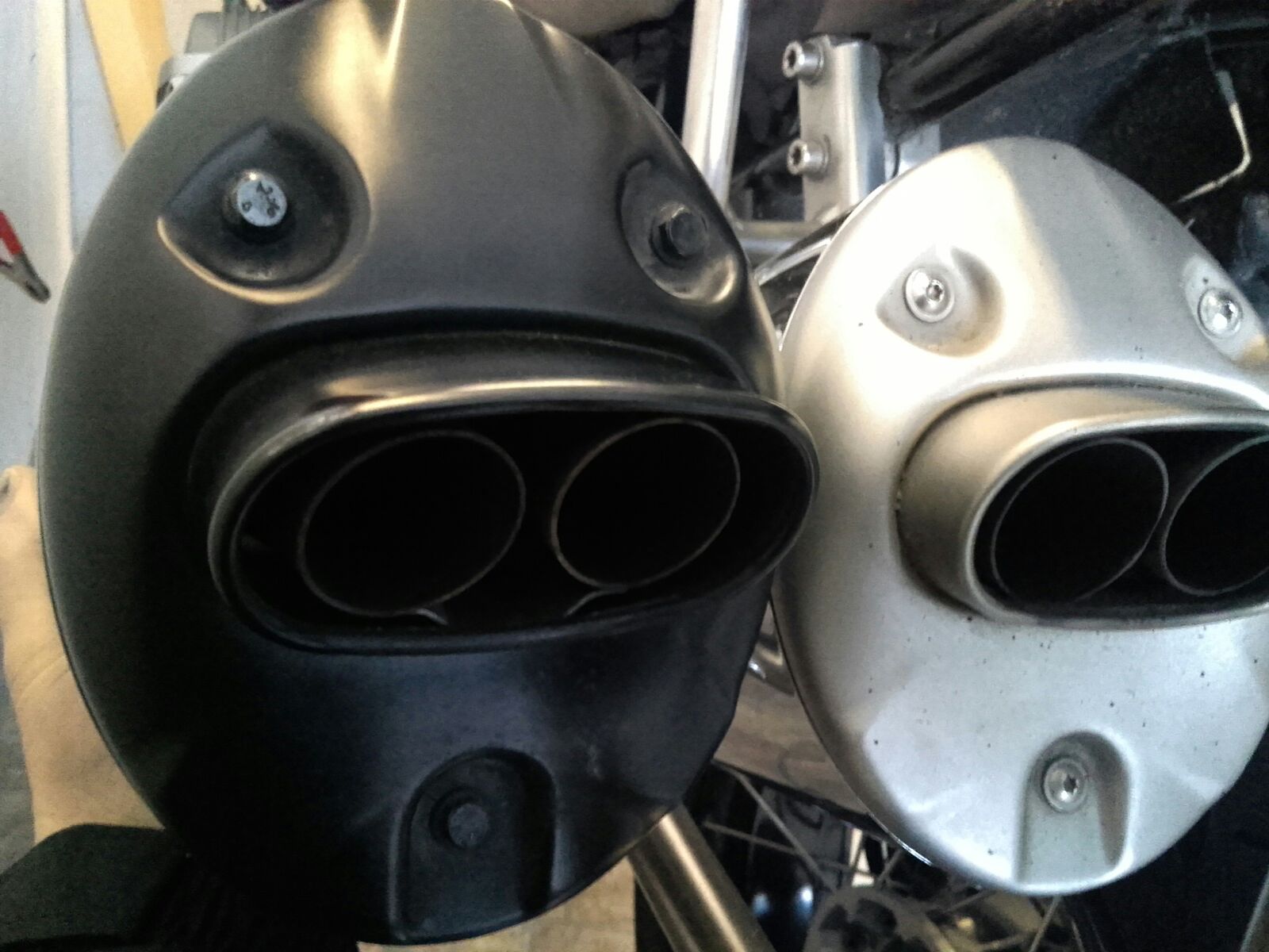 Auspuff von der Mü besorgen war kein Problem. Die haben aber alle das schwarze Ende am Topf. Mein, die gab es gar nicht anders.