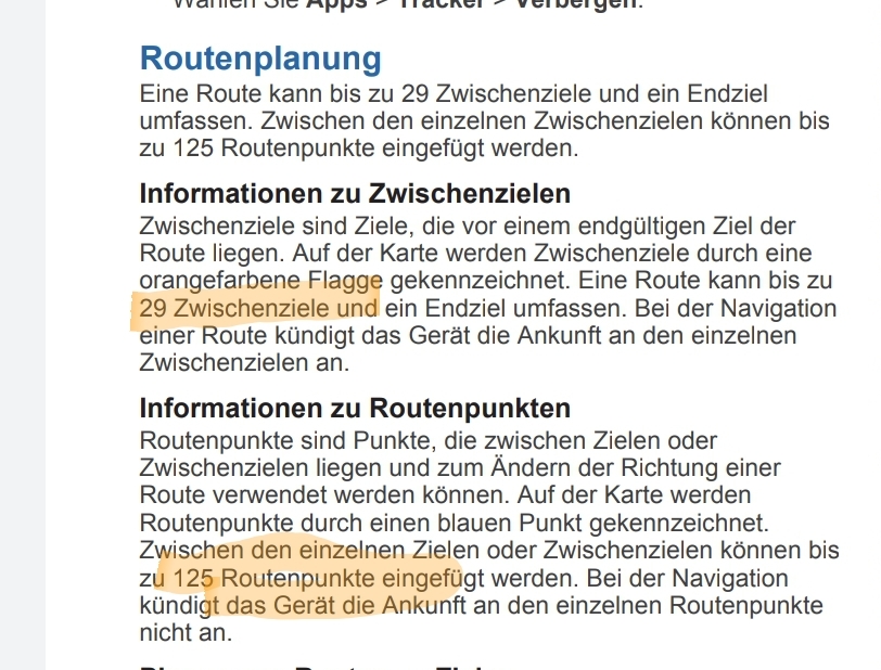 Die Übersicht kann nicht stimmen. Wenn ich die Routenpunkte zähle, komme ich auf 7 echte Wegpunkten (inkl. Start und Ziel) und einem Rest von 42 (Shaping)-Punkten ohne Alarm.