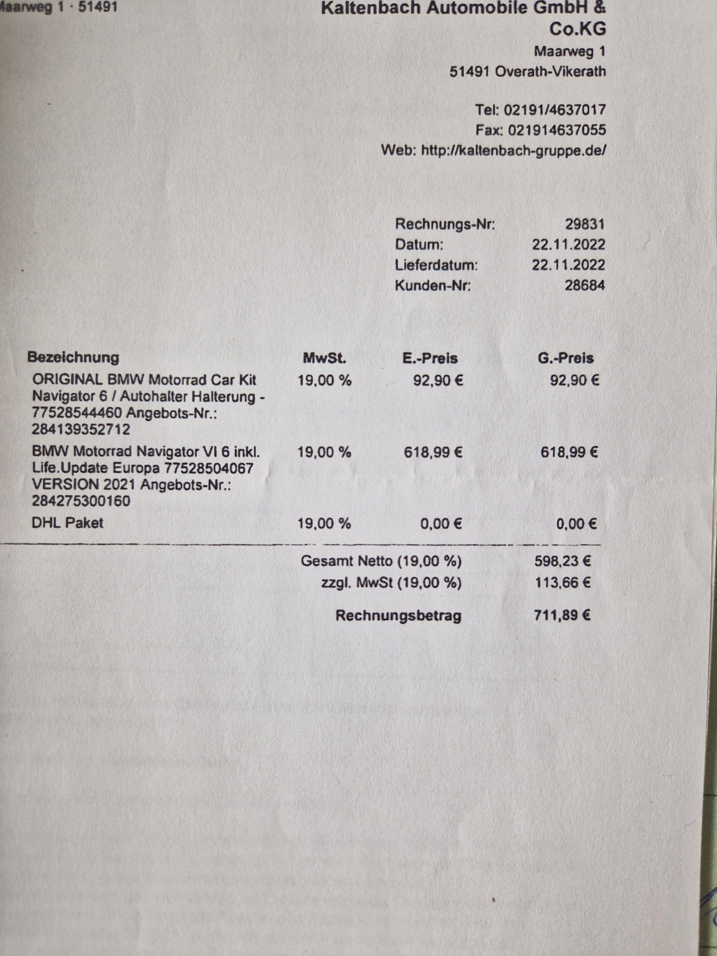 Ich biete wegen Umstieg auf BMW Cradle einen Navigator VI incl. Autohalter an. Kaufdatum 22.11.2022, Rechnung vorhanden. Den Navigator habe ich vielleicht 5x benutzt, die Autohalterung für den Navigator VI ist noch unbenutzt. Auf beides ist noch Garantie bis zum 21.11. 2024. Neupreis waren 711,89 €, ich gebe beides nur zusammen für 450,00 € ab. Abholung in 06120 Halle/Saale möglich, Versand gegen Aufpreis.