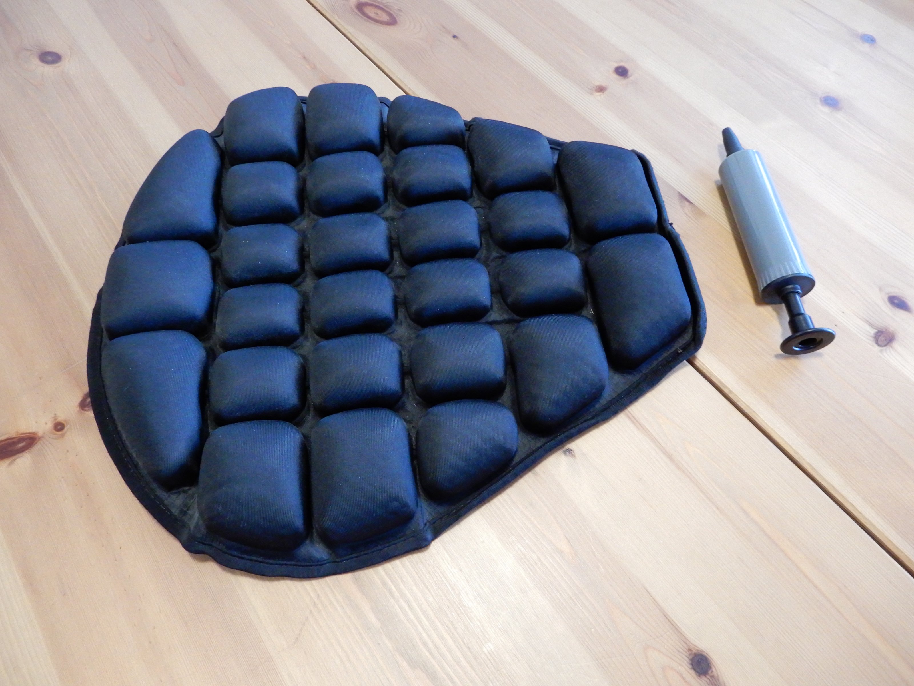 Das Luftpolster ist in der Härte verstellbar (funktioniert einwandfrei). Luftpumpe ist dabei!