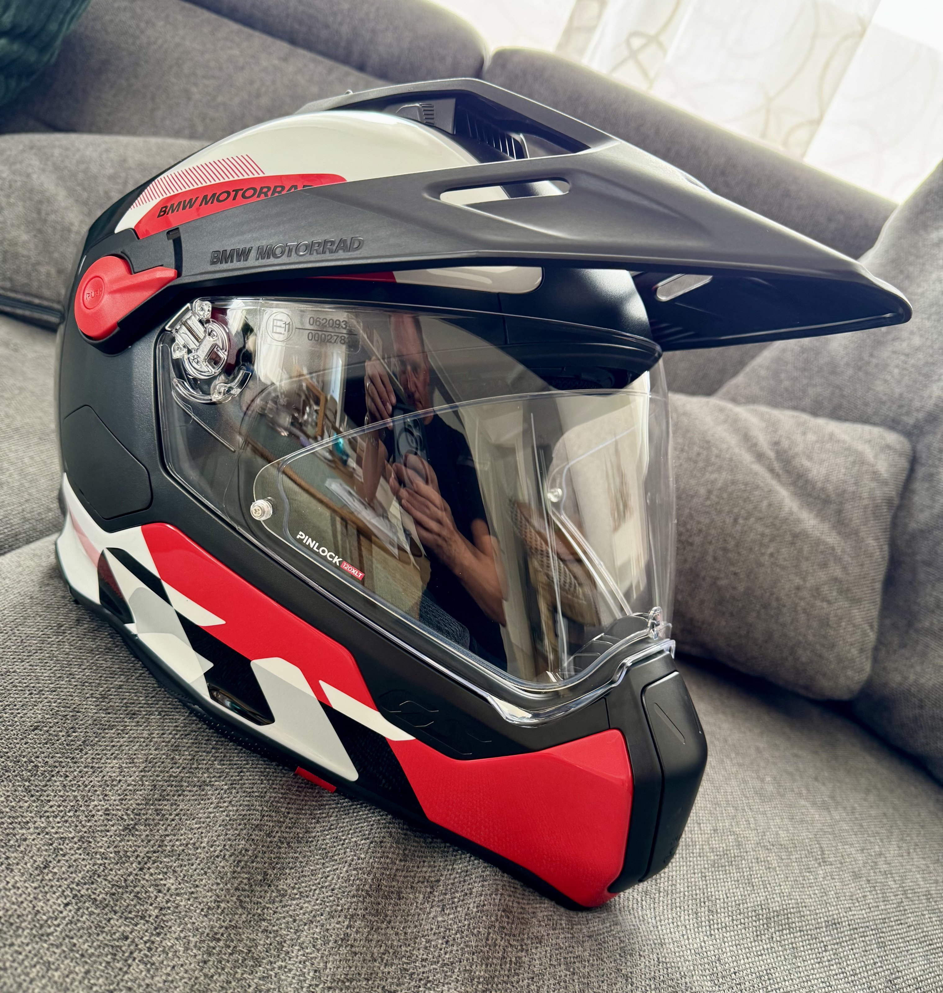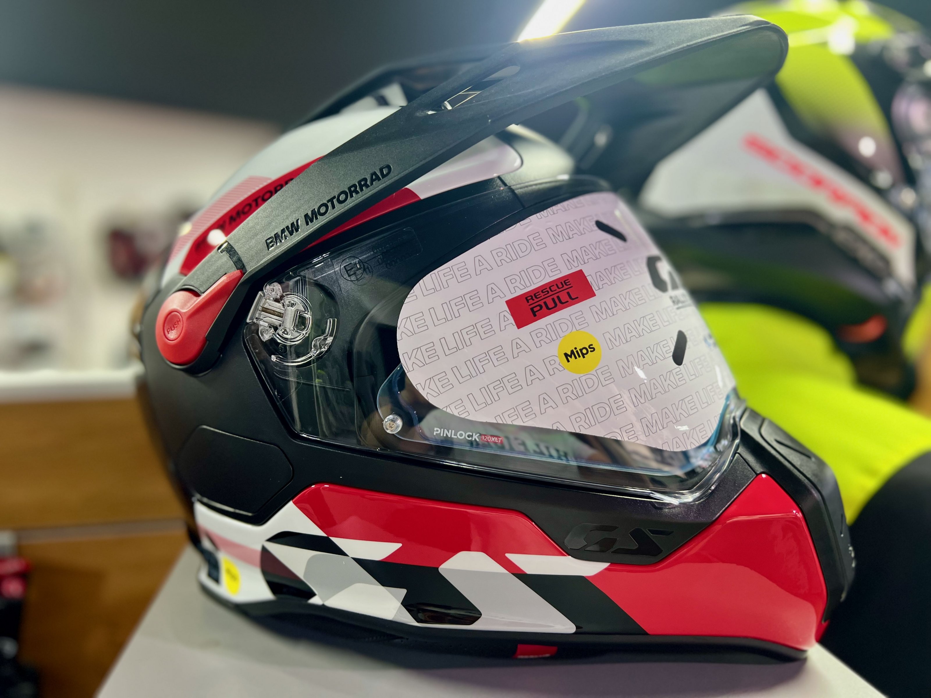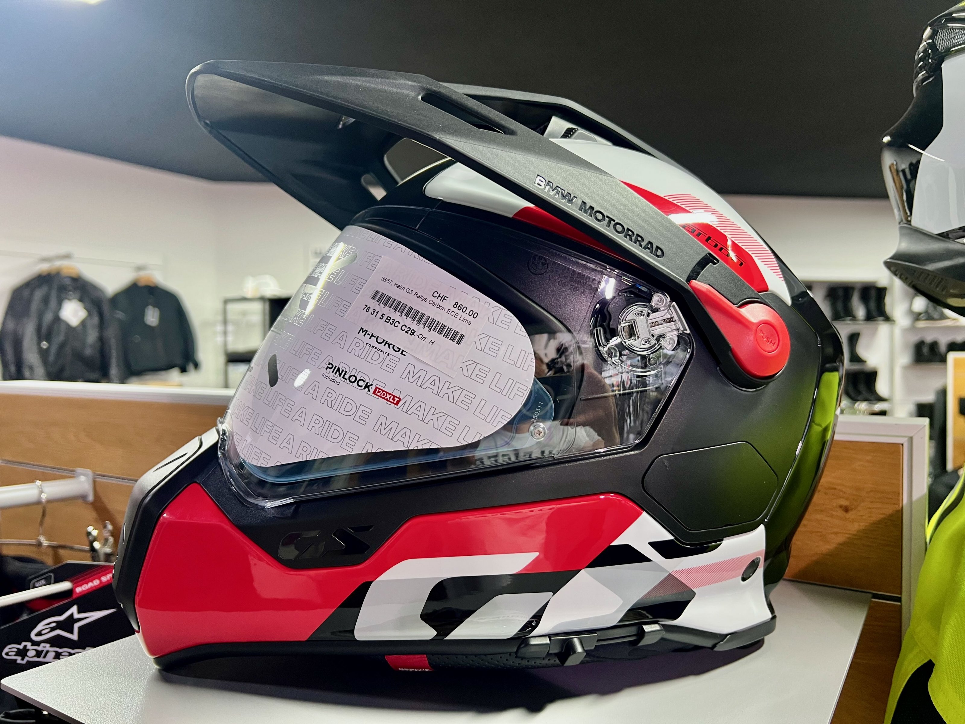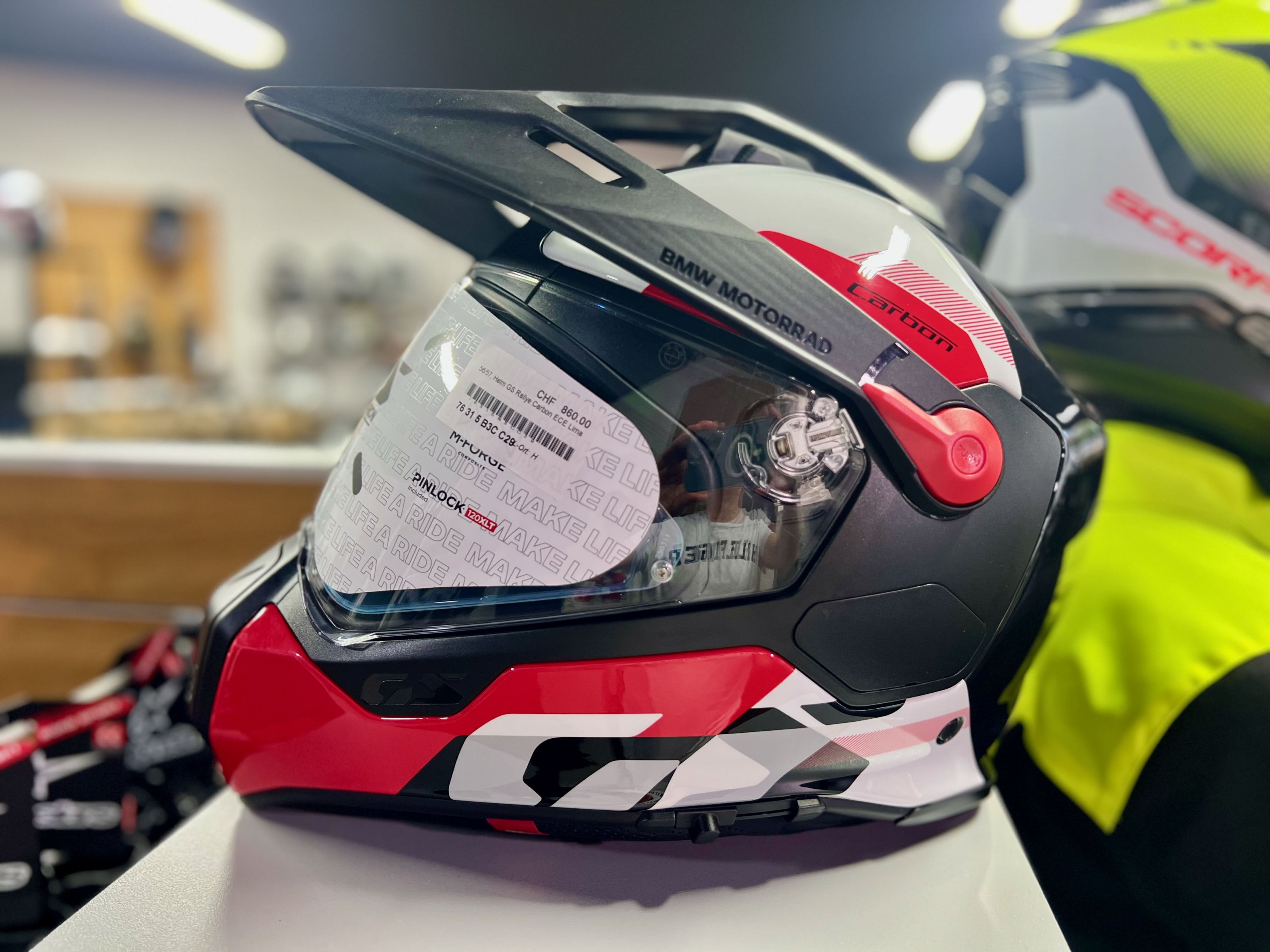 Der neue BMW Helm Rallye GS Carbon Model 2026 in der Ausführung Lima. Die Innenpolster ist wesentlich dicker, neues MIPS System und der Halsabschluss ist wesentlich enger. Erste Anproben zeigen eine Tendez eine Nummer grösser als GS Pure 2025 zu nehmen.