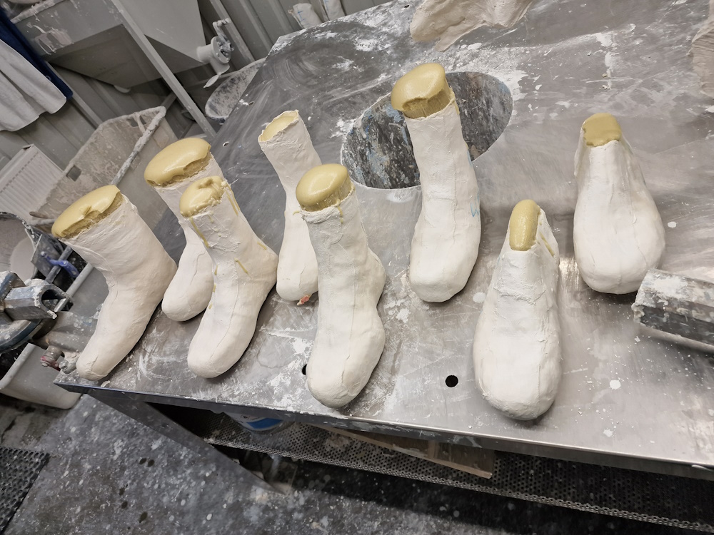 Im Schnitt schäume ich jeden (Arbeits)Tag ein Paar Leisten. Zum anmischen benutze 2 Anrührbecher und selbst gesägte massive Sperrholzspachtel.