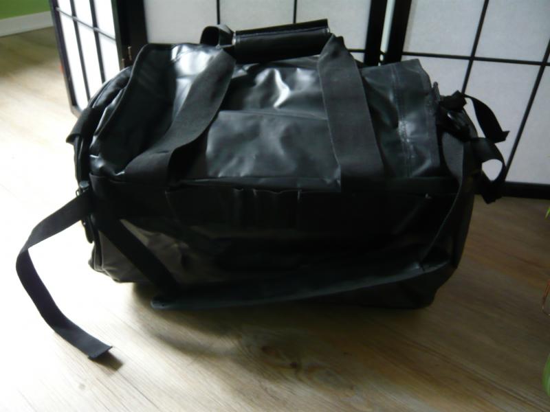 Komplett mit gepolstertem Gurtsatz, ist sie als Rucksack oderUmhängetasche nutzbar. Die Tasche ist so ausgelegt, dass im Hauptfach zwei Helme und in der getrennten Seitentasche Handschuhe etc Platz finden.