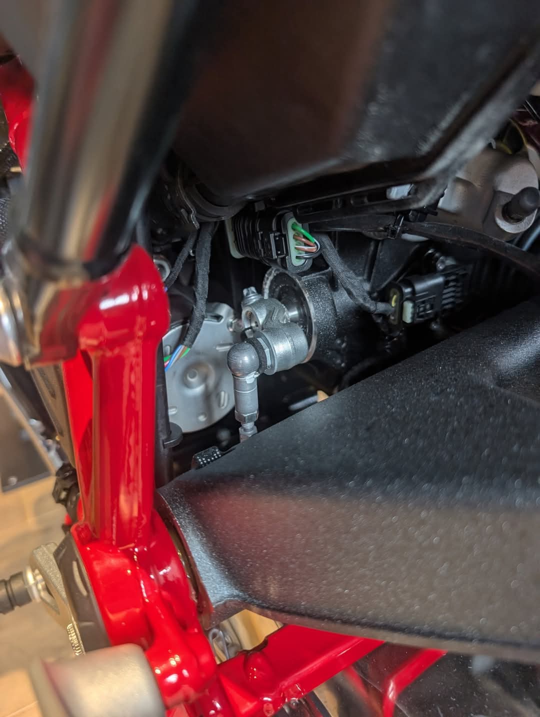 -auf der rechten Seite unter dem Tank hinter dem R12GS Schild ist eine silbernes Teil mit 2 Kabelanschlüssen.