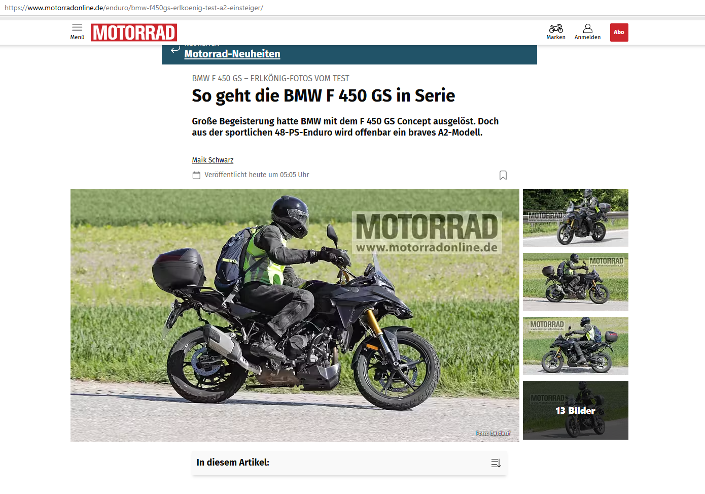 Neue BMW GS 450 - Ähnliche Themen