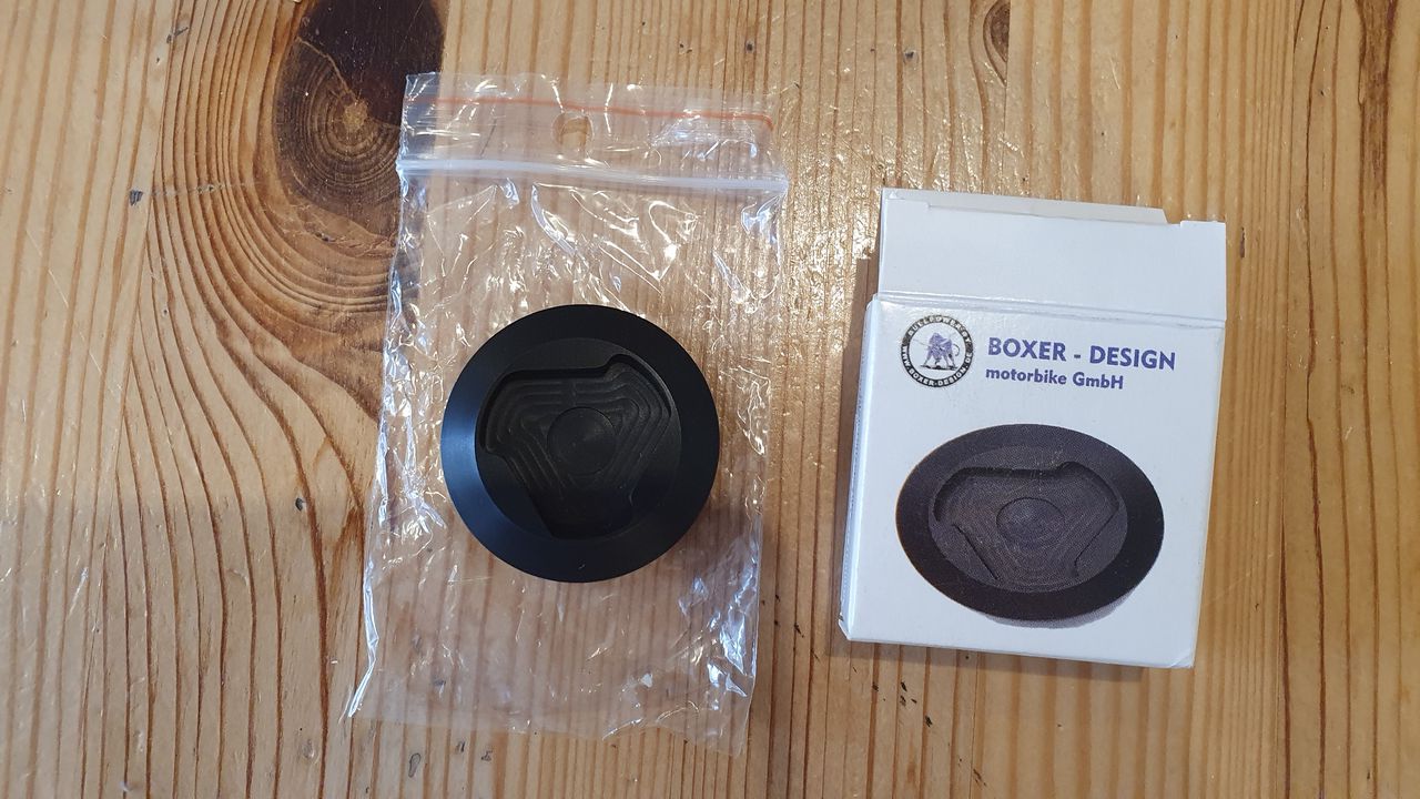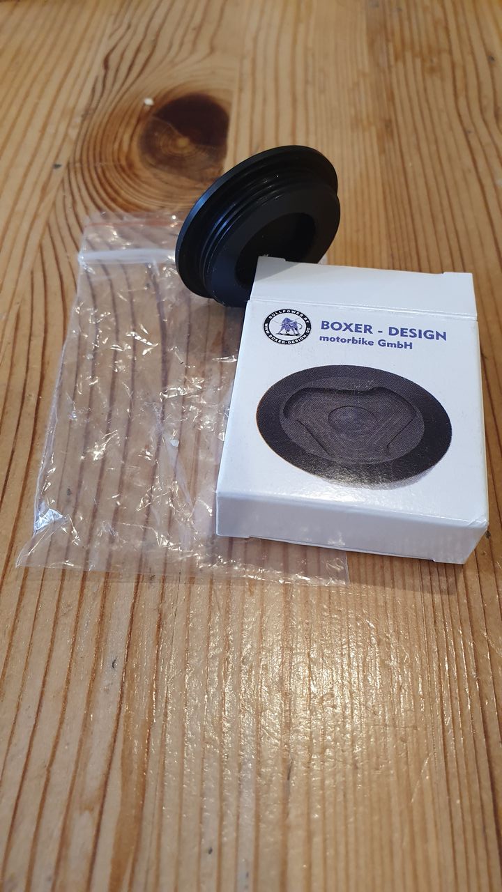 Somit wird die doch sehr einfache originale Plastik-Einfüll-Schraube durch diese formschöne und sehr elegante eloxierte Aluminium-Schraube ersetzt und wertet den Boxer auf.