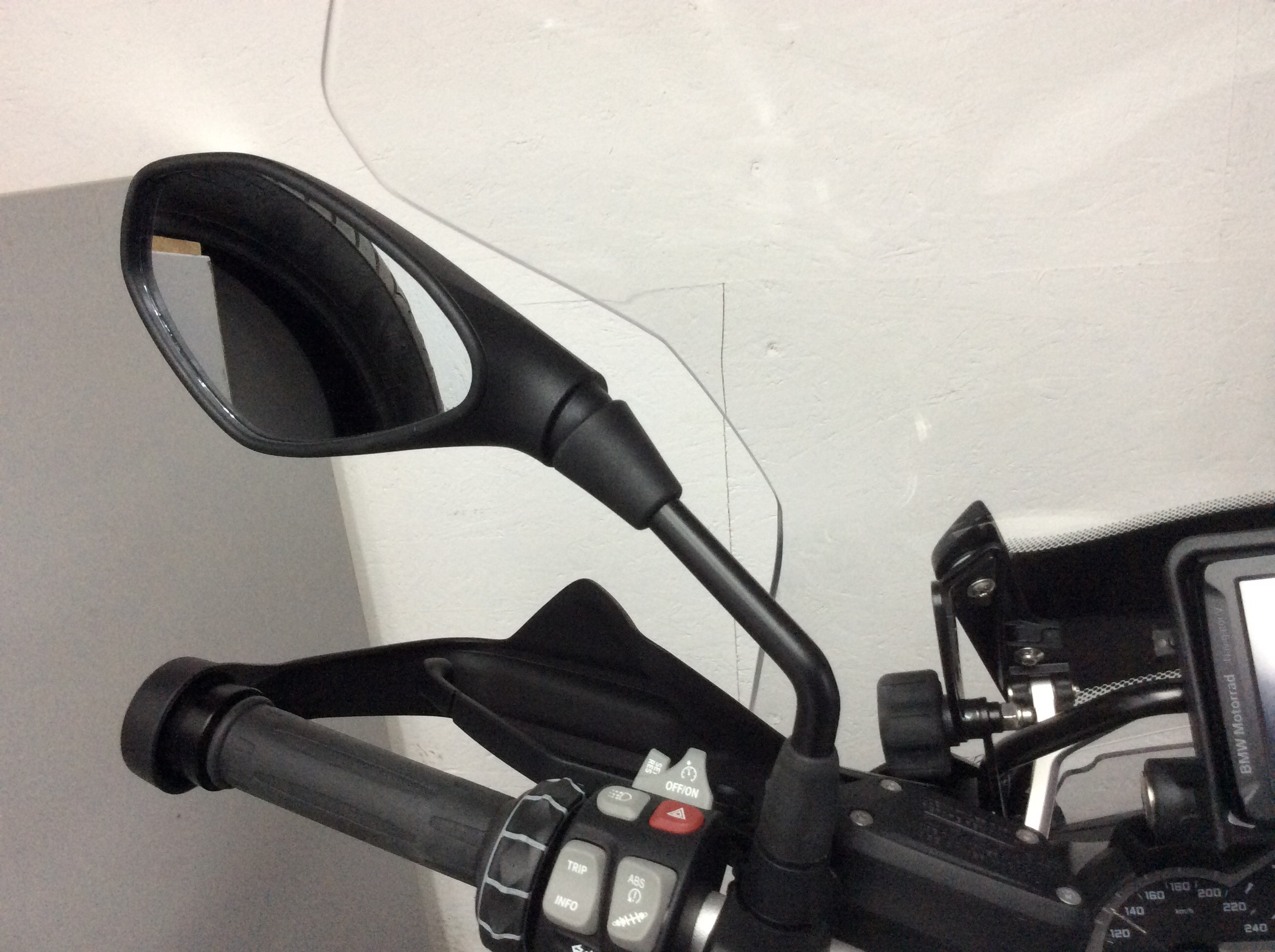Wunderlich hat sofort reagiert und mir eine neue Scheibe und eine Spiegelverbreiterung geschickt. Die neue Scheibe hat leider das gleiche Problem. Die Spiegelverbreiterung hilft auch nicht weiter. Dies ist wohl eher für die alte GS gedacht. Die Spiegel schlagen trotzdem an und zusätzlich ist der Tempomat nicht mehr zu bedienen.