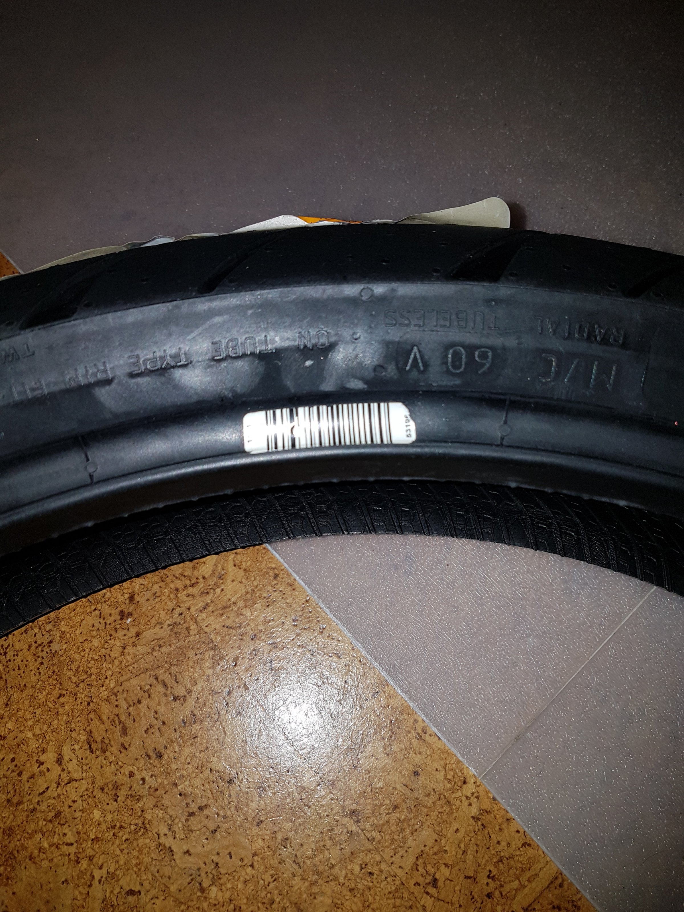 Beide neue Reifen (hinten und vorne) haben einen Aufkleber mit einem Barcode am Wulst bzw. Kernreiter der sich irgendwie nicht oder nur sehr mühsam entfernen lassen würde.