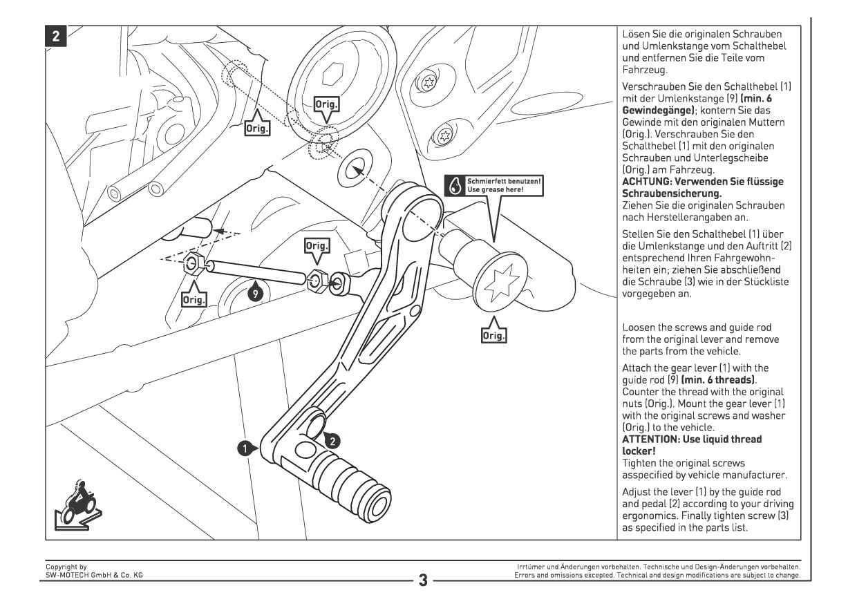 3. bei der Buchse in dem SW-Motech Schalthebel handelt es sich um Metall (Kupfer?), so dass die Schmierung lt. Anleitung von SW-Motech sicherlich sinnvoll ist und nicht, wie bei manchen Auszügen aus Werkstatthandbüchern hier gesehen, um eine PTFE-Buchse, die nicht geschmiert werden darf?