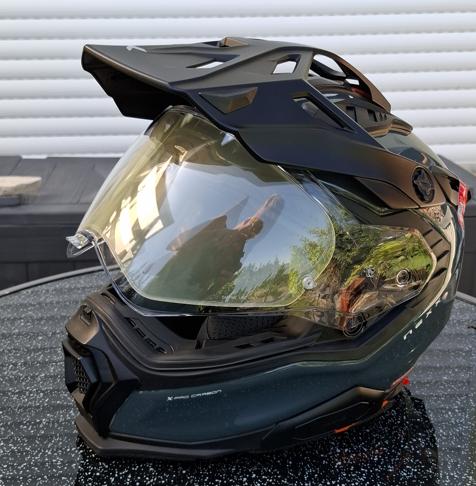 Aerodynamischer Helmschirm, mit einstellbarem Multipositionssystem