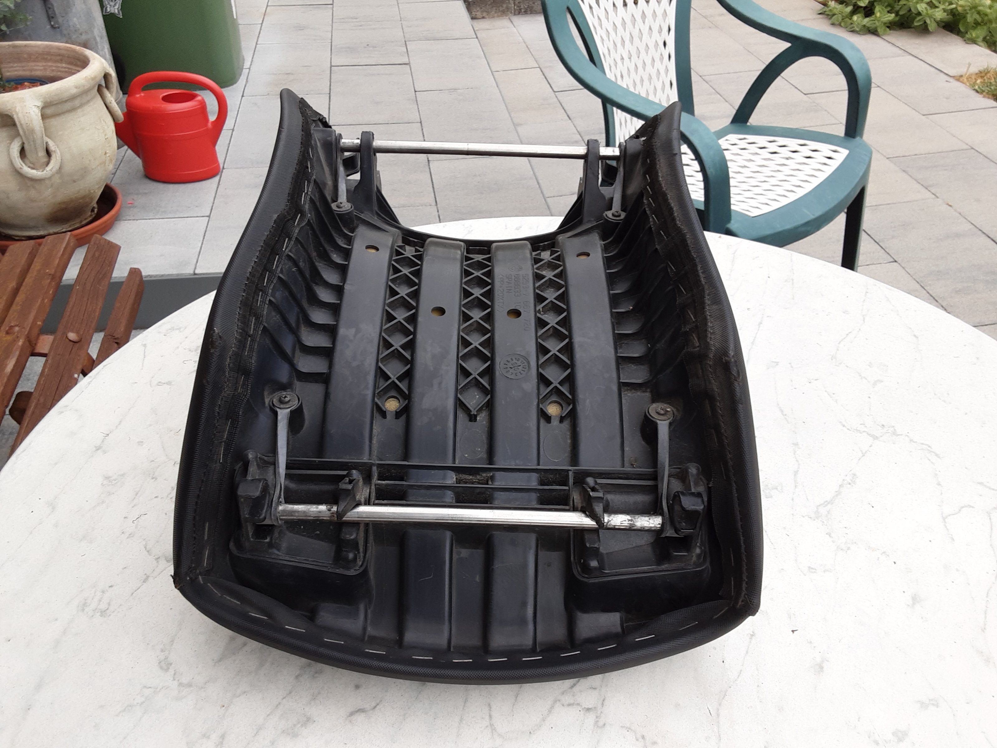 Die Sitzbank hat Gebrauchsspuren ( Abriebspuren unten links und rechts ) Hat mich aber nie gestört.