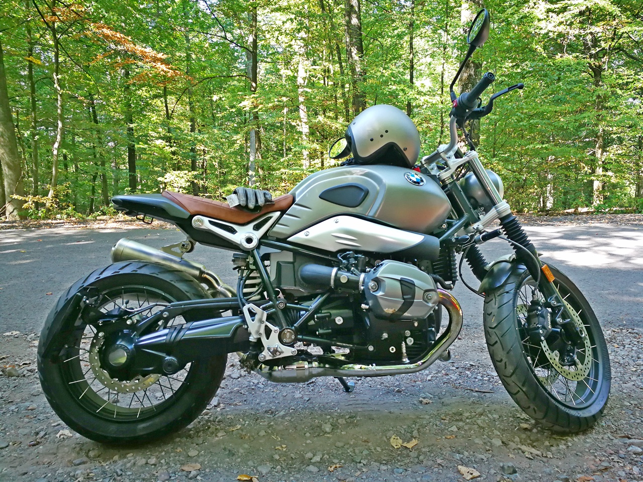 mein BMW nineT Scrambler (vorne 19", hinten 17"), ca. 3.000 km auf der Uhr und mit Kreuzspeichen-Felgen (tubeless), hoppelt.