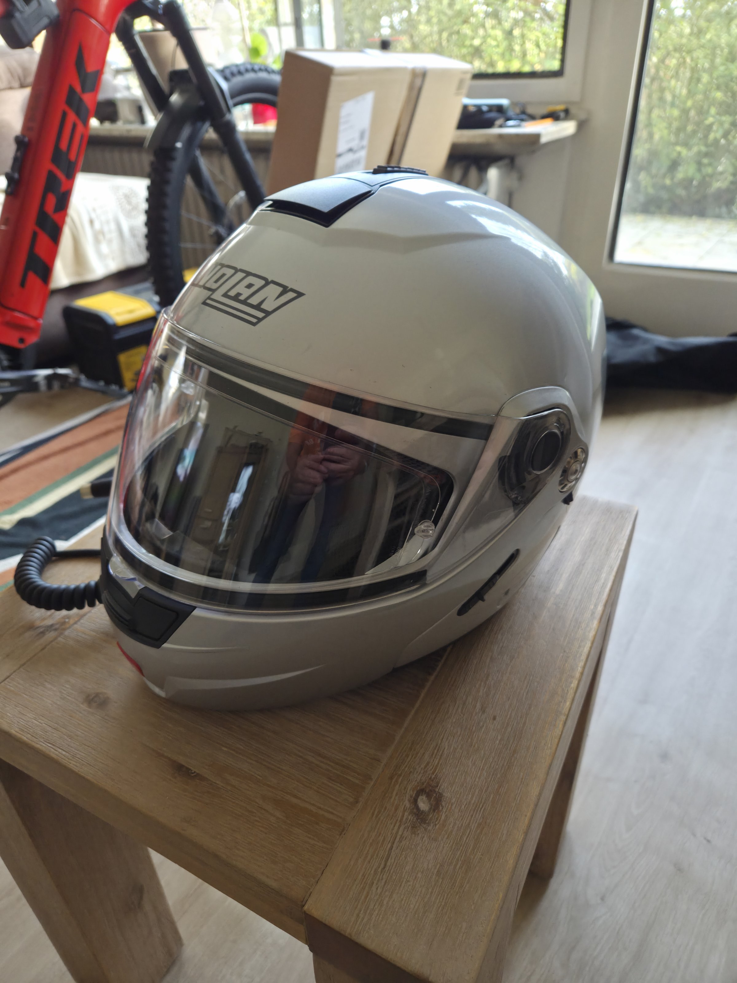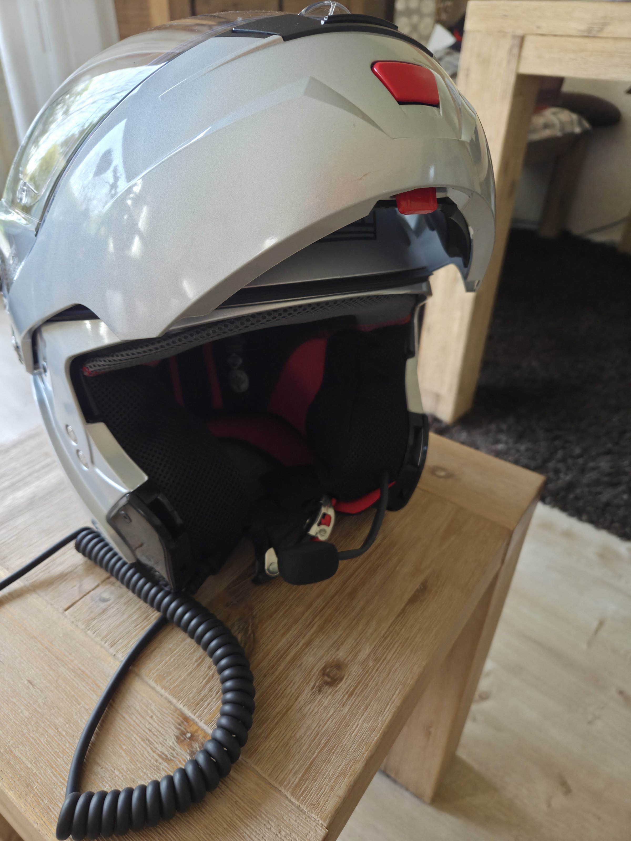Hallo zusammen, ich bete hier einen Nolen Klapphelm Silber in der Größe S zum Verkauf an. Der Helm ist in einem sehr gutem Zustand stammt aus einem tierfreien Nichtraucherhaushalt und wurde selten getragen. Es wurde immer eine Sturmhaube benutzt . Es sind rechts und links Lautsprecher verbaut und kann mit einer Baehr Kommunikationsanlage gekoppelt werden Mikrofon und ein Spiralkabel ist ebenfalls verbaut. Kein Sturz kein hinfaller. Das Visier ist mit Pinlock. Versand oder Abholung möglich