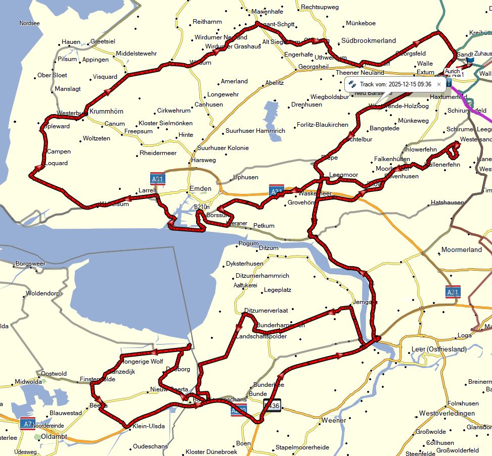 Ziemlich kalt, später wurde es auch noch schattig. Immerhin 243km. In Holland oben an der Grenze gibt es den besten Kaffee überhaupt.