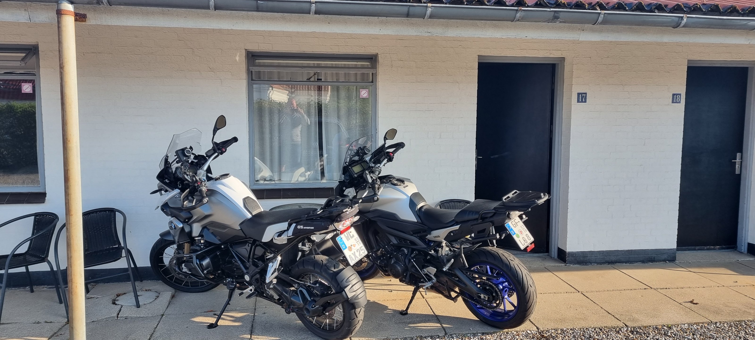 Ja, wir haben uns für die Pussyvariante (Anreise mit Auto/Trailer) entschieden. Wir hatten beide keine Lust, vollbepackt stundenlang auf der BAB zu verbringen. Außerdem ist der Firmenwagen kostengünstiger, als 2x Benzin mit den Mopeds zu verfeuern.