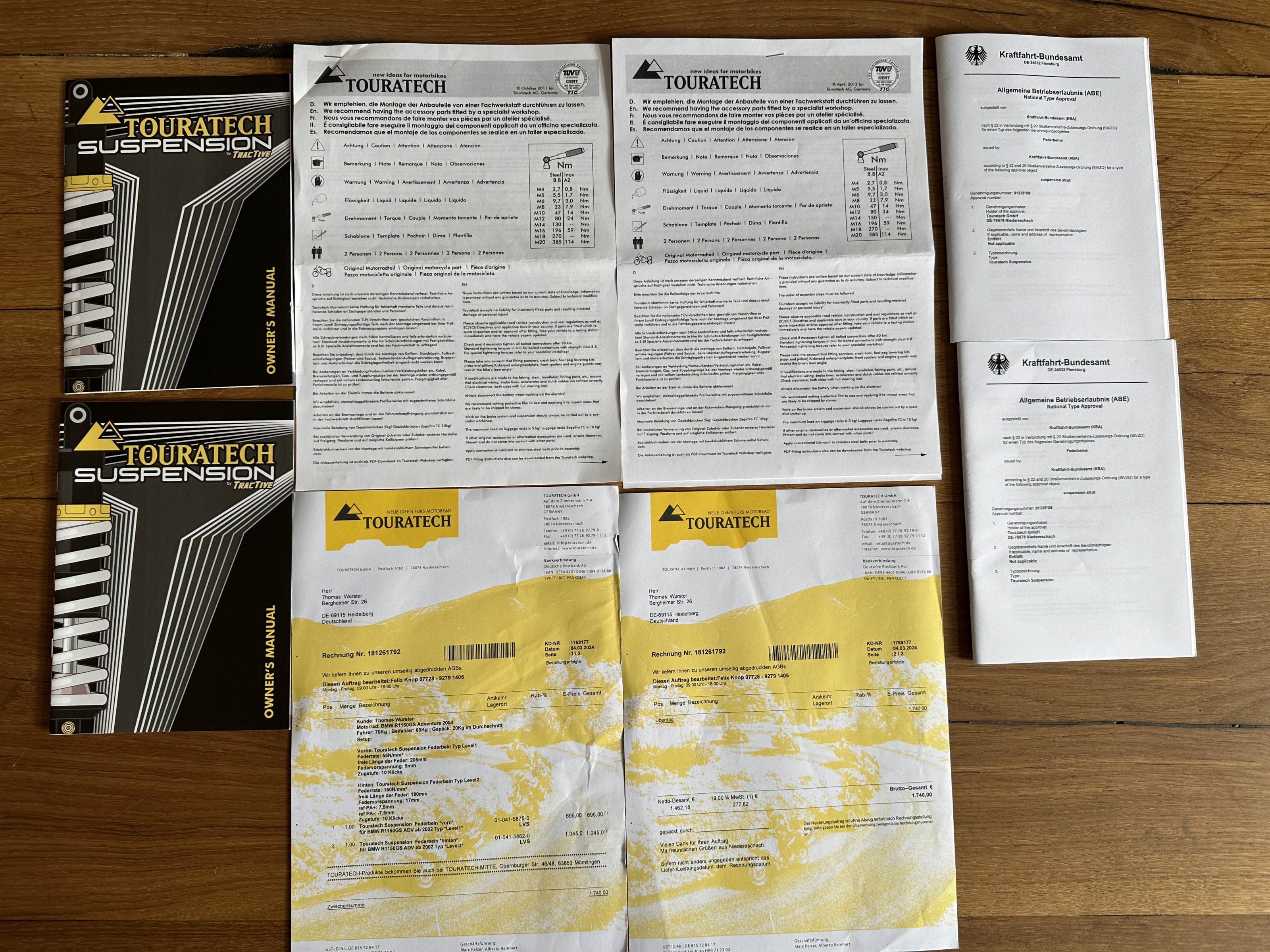 Originalrechnung, ABE, Bedienungs- und Montageanleitungen liegen bei.