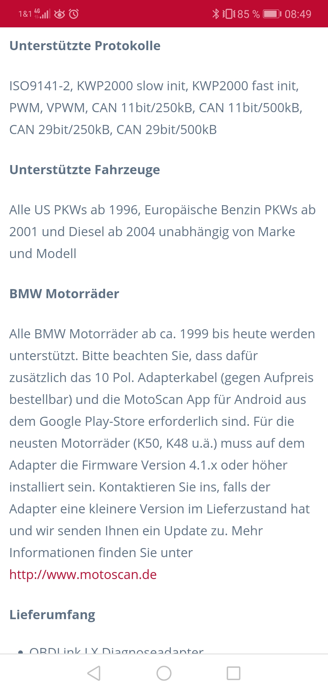 Läuft nur auf Androit. Es wird noch zusätzlich die Vollversion der "MotoScan" App benötigt! (Kosten 30€ im Play Store)