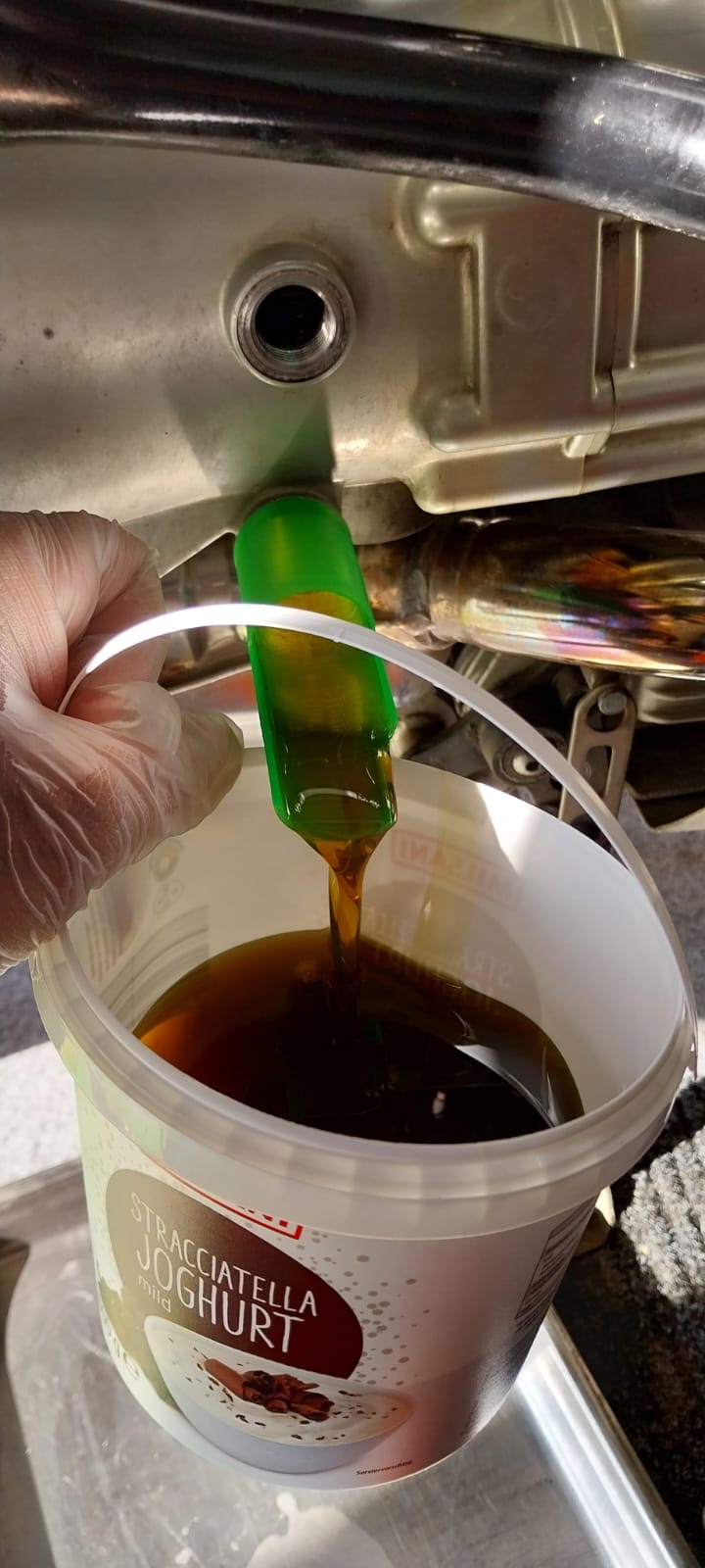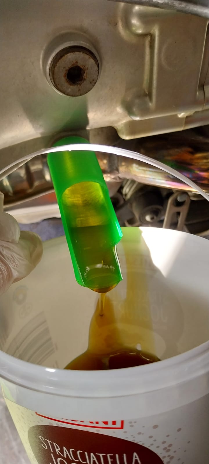 Ich habe einen Öl-Rüssel gebastelt und in PLA ausgedruckt. Das Teil Öl-fest (aber nicht Lösungsmittel oder Benzinfest).