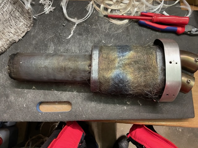 Repkit für 140.-€ inkl. Versand bei Jamparts geordert. Entgegen obigem Bericht sind da auch die Schellen nicht dabei. Das Set besteht aus Nieten für Carbondeckel, und die eigentliche Hülle, der Dämmmatte 220 cm lang!!!, 2 Dämwollenstreifen für die Füllung am Auspuffende und eine Hitzeschutzmatte. Das war.